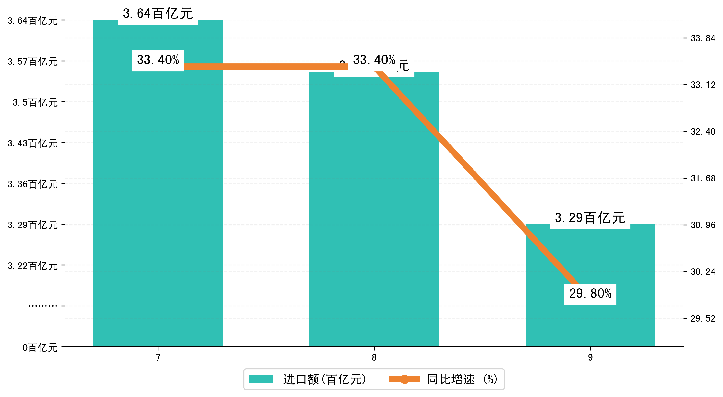 以人民币计,2024年9月成都市进口额为329,2947.1355万元,相比上月减少了25,5650.2223万元;相比上年同期增加了33,1460.3684万元,同比增加了29.80%。