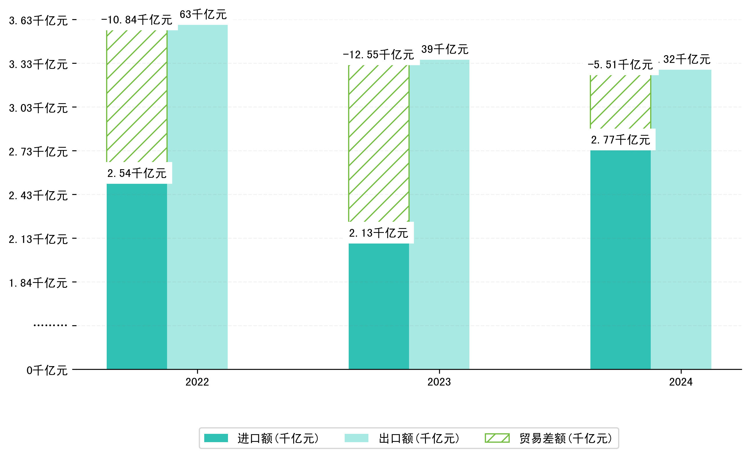 以人民币计,2024年1-9月成都市贸易差额为551,1663,4885万元(贸易顺差),相比上年同期减少了704,0747,6129万元,同比减少-56.09%。