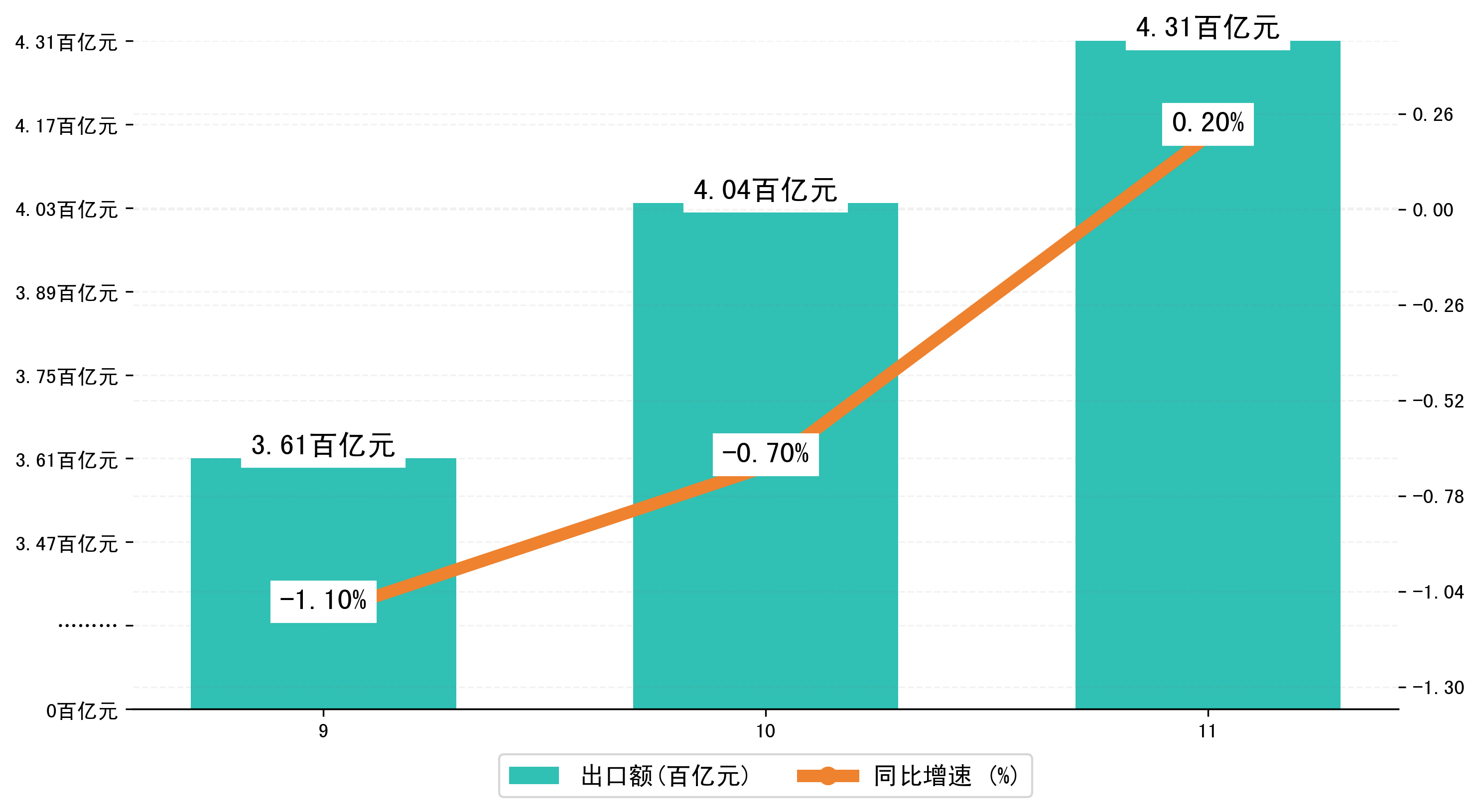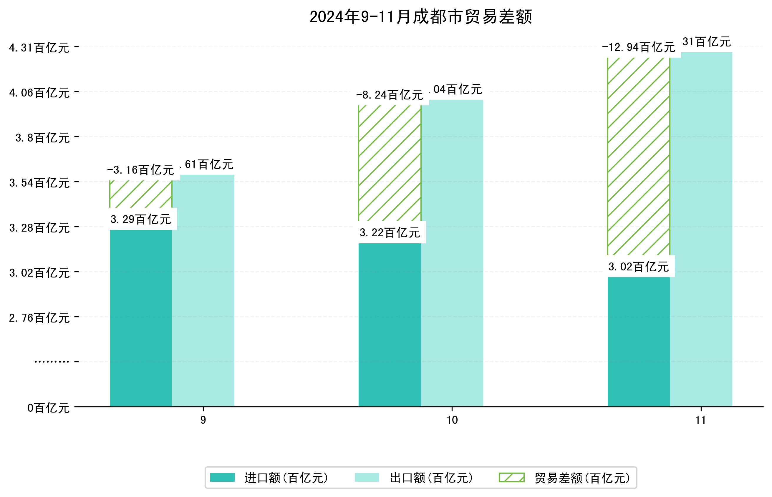 一、2024年11月成都市单月出口总额及进出口差额统计分析