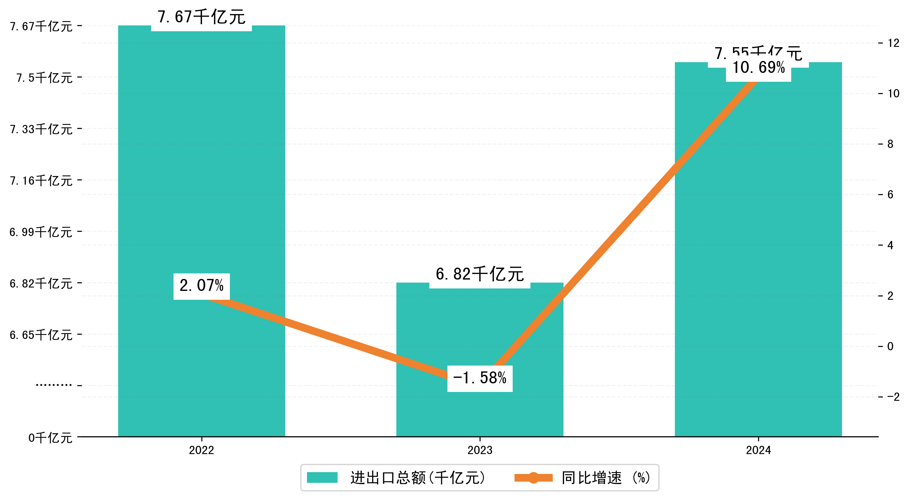 以人民币计,2024年1-11月成都市进出口总额为7551,0554.3509万元,相比上年同期增加了729,3354.1712万元,同比增加了10.70%。