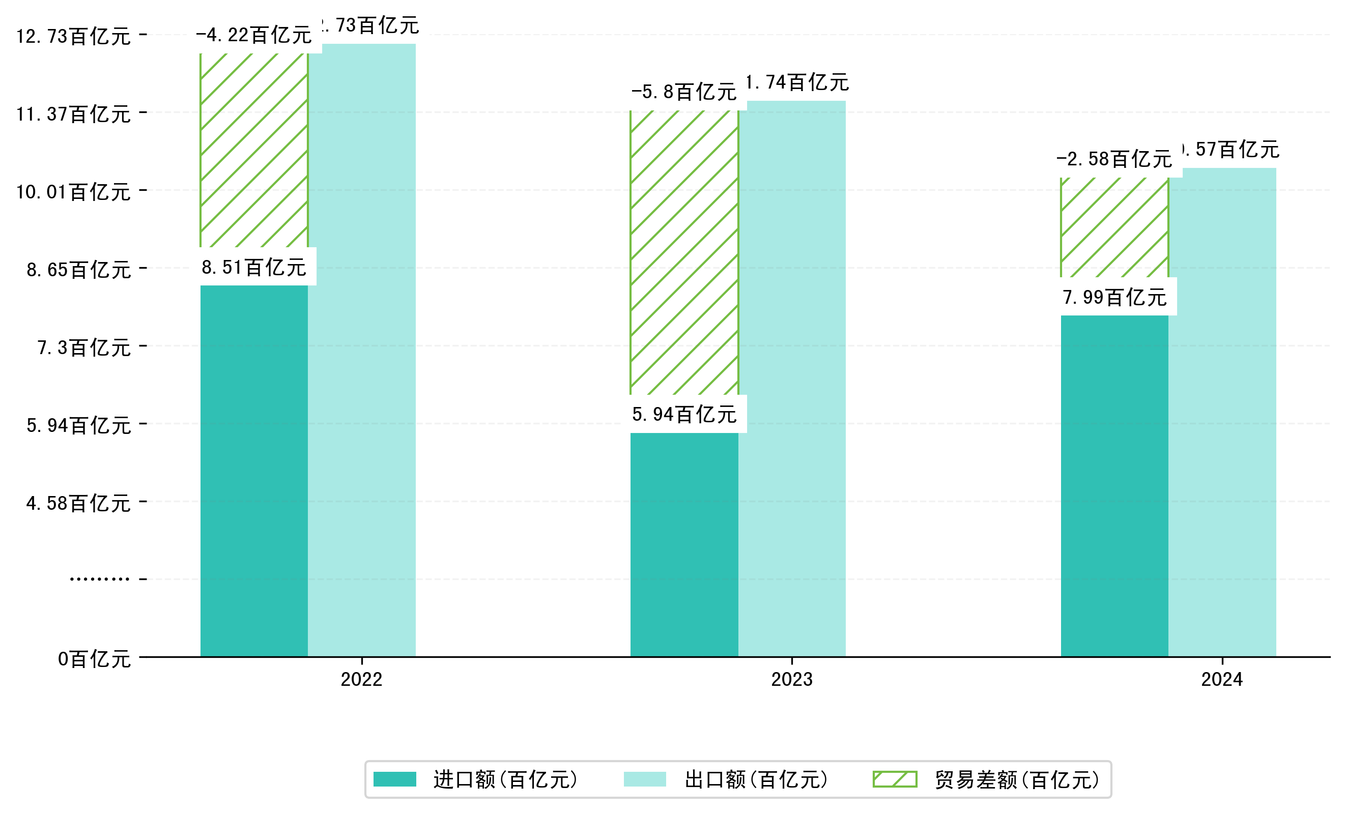 以美元计,2024年1-3月成都市贸易差额为36,2934,5678万美元(贸易顺差),相比上年同期减少了47,6962,4210万美元,同比减少-56.79%。