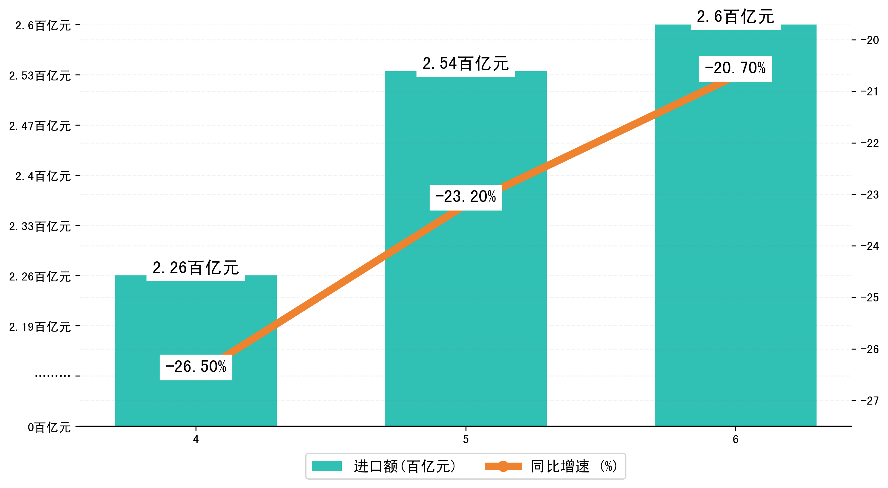 以美元计,2023年1-6月成都市进口额为193,8813.4552万美元,相比上年同期减少了67,9402.1619万美元,同比减少-25.90%。