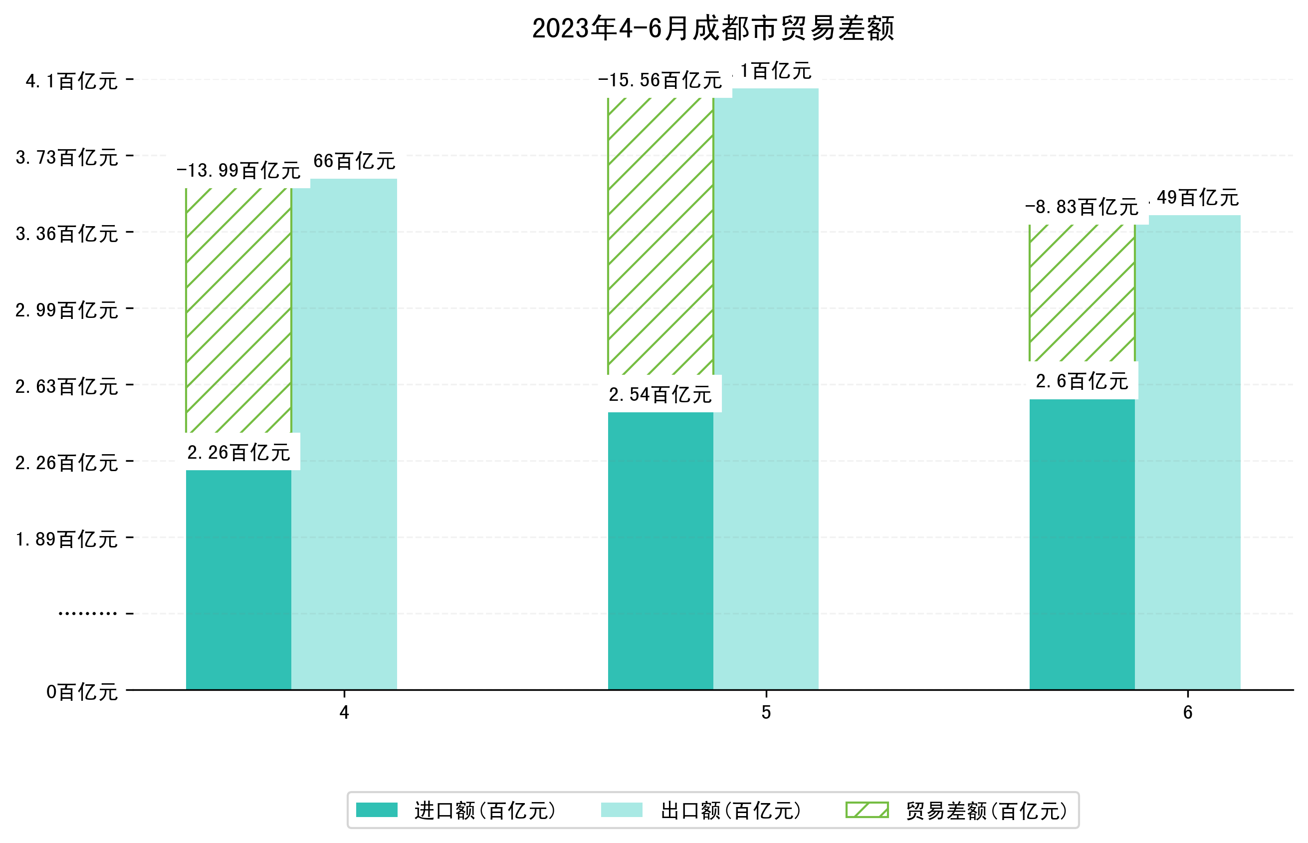 一、2023年6月成都市单月出口总额及进出口差额统计分析
