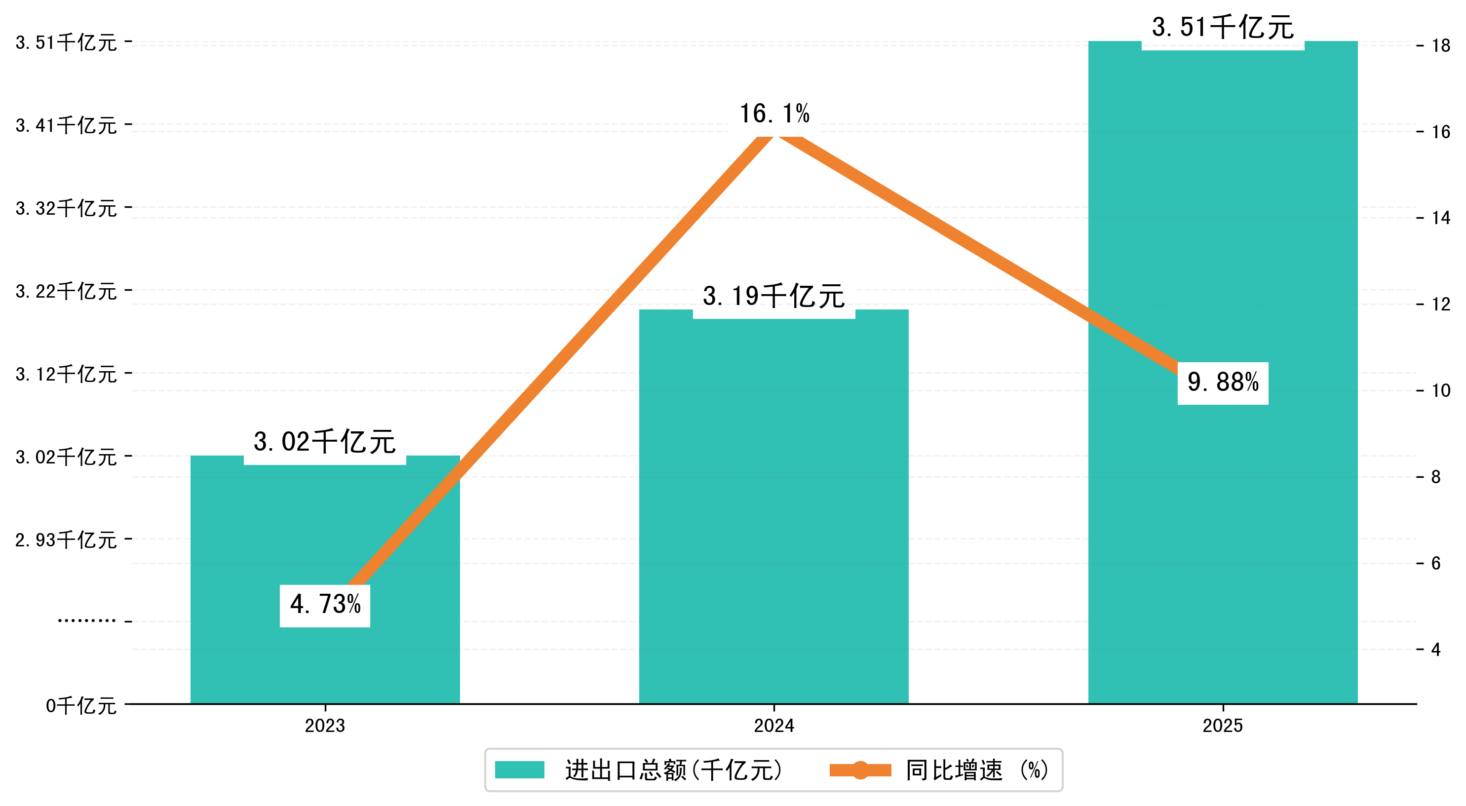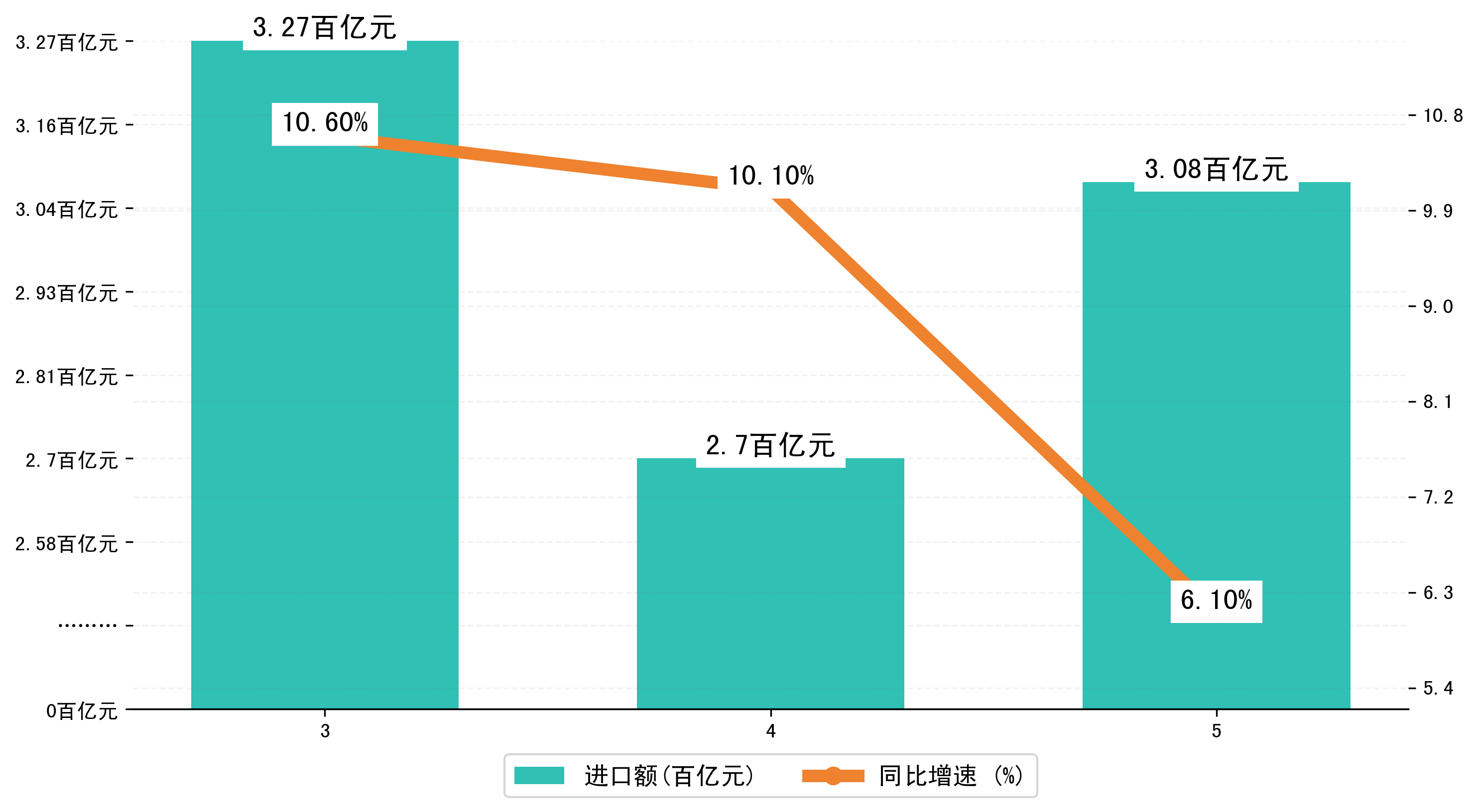 以人民币计,2025年1-5月成都市进出口总额为3510,1441.401万元,相比上年同期增加了315,6903.7918万元,同比增加了10.40%。