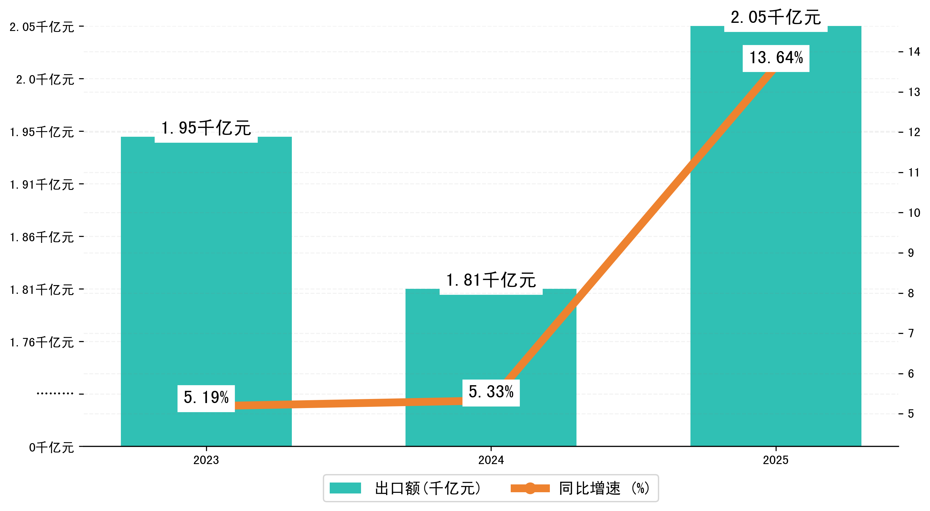 以人民币计,2025年1-5月成都市出口额为2053,2492.8023万元,相比上年同期增加了246,4823.8457万元,同比增加了13.80%。