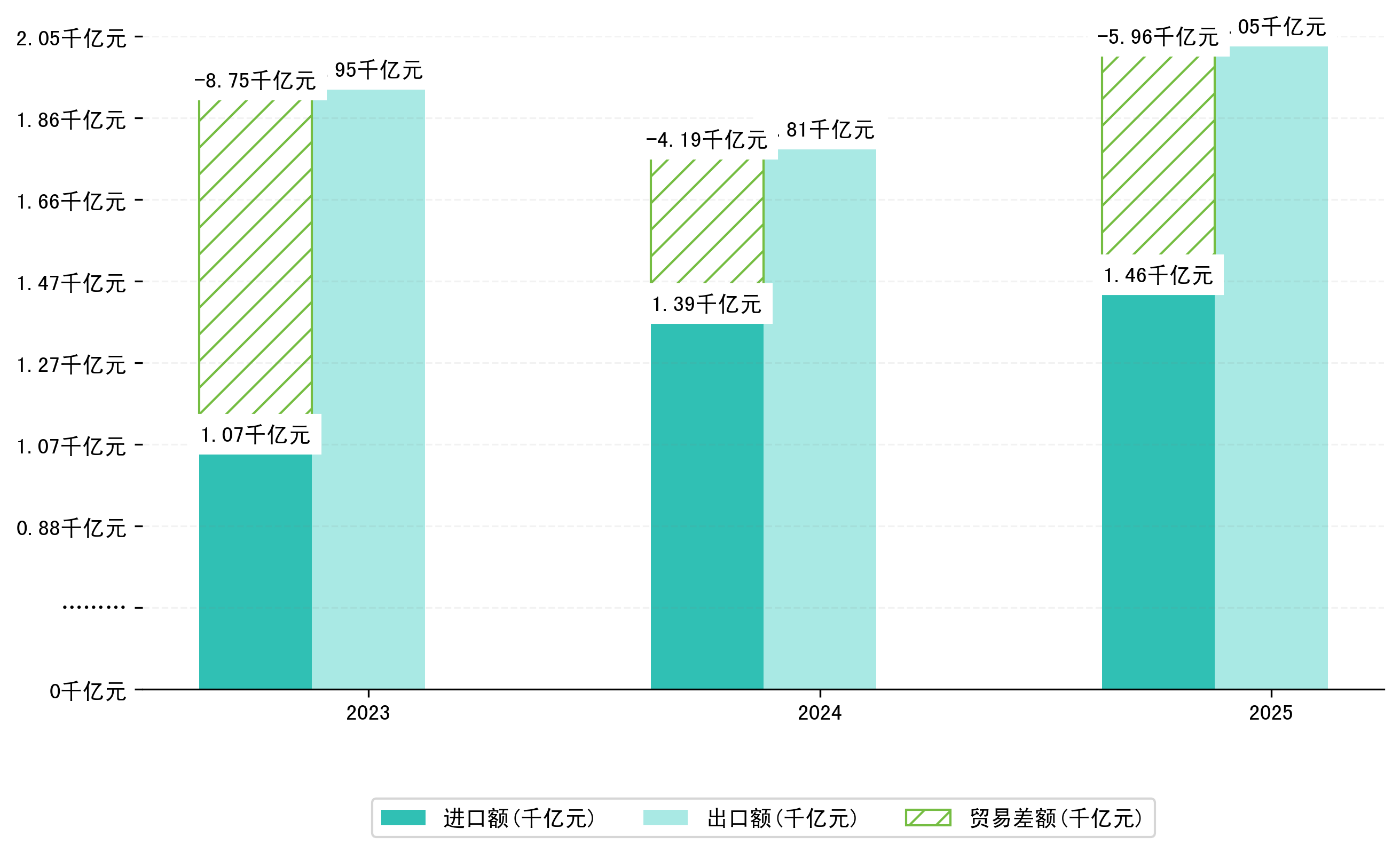 以人民币计,2025年1-5月成都市贸易差额为596,3544,2036万元(贸易顺差),相比上年同期增加了177,2743,8996万元,同比增加42.3%。