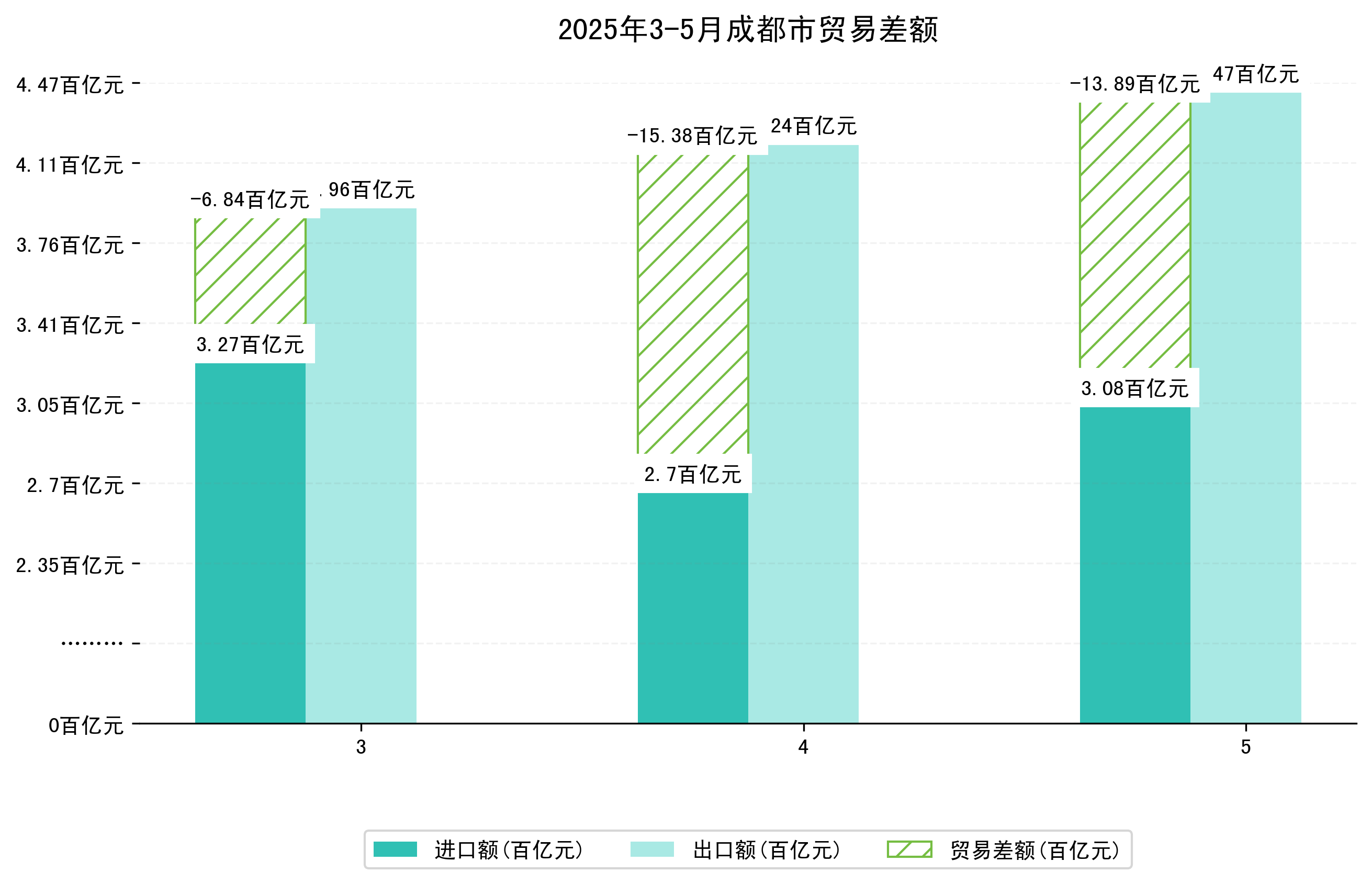 一、2025年5月成都市单月出口总额及进出口差额统计分析
