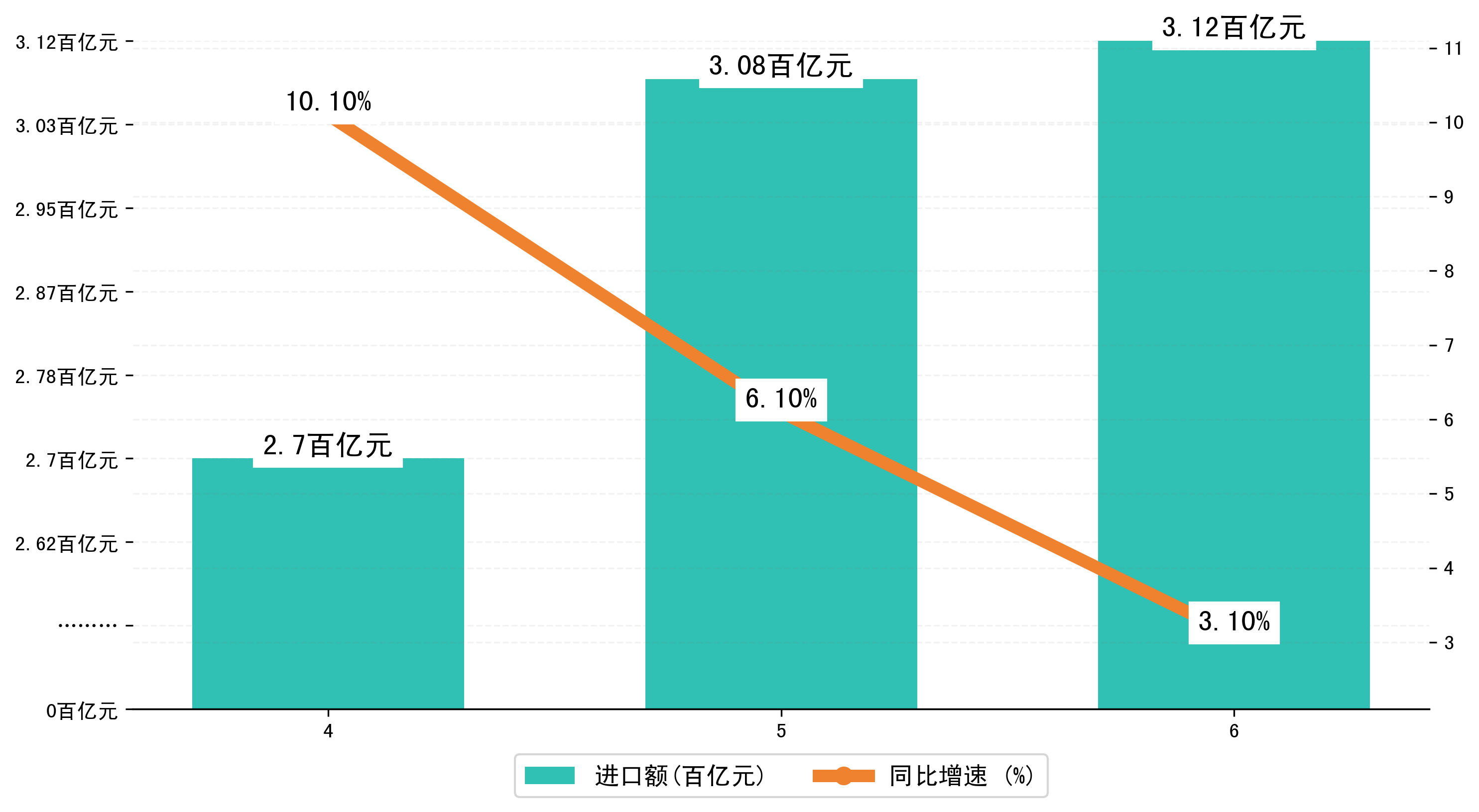 以人民币计,2025年6月成都市进口额为311,6184.214万元,相比上月增加了3,8228.859万元;相比上年同期减少了32,3812.5731万元,同比增加了3.10%。