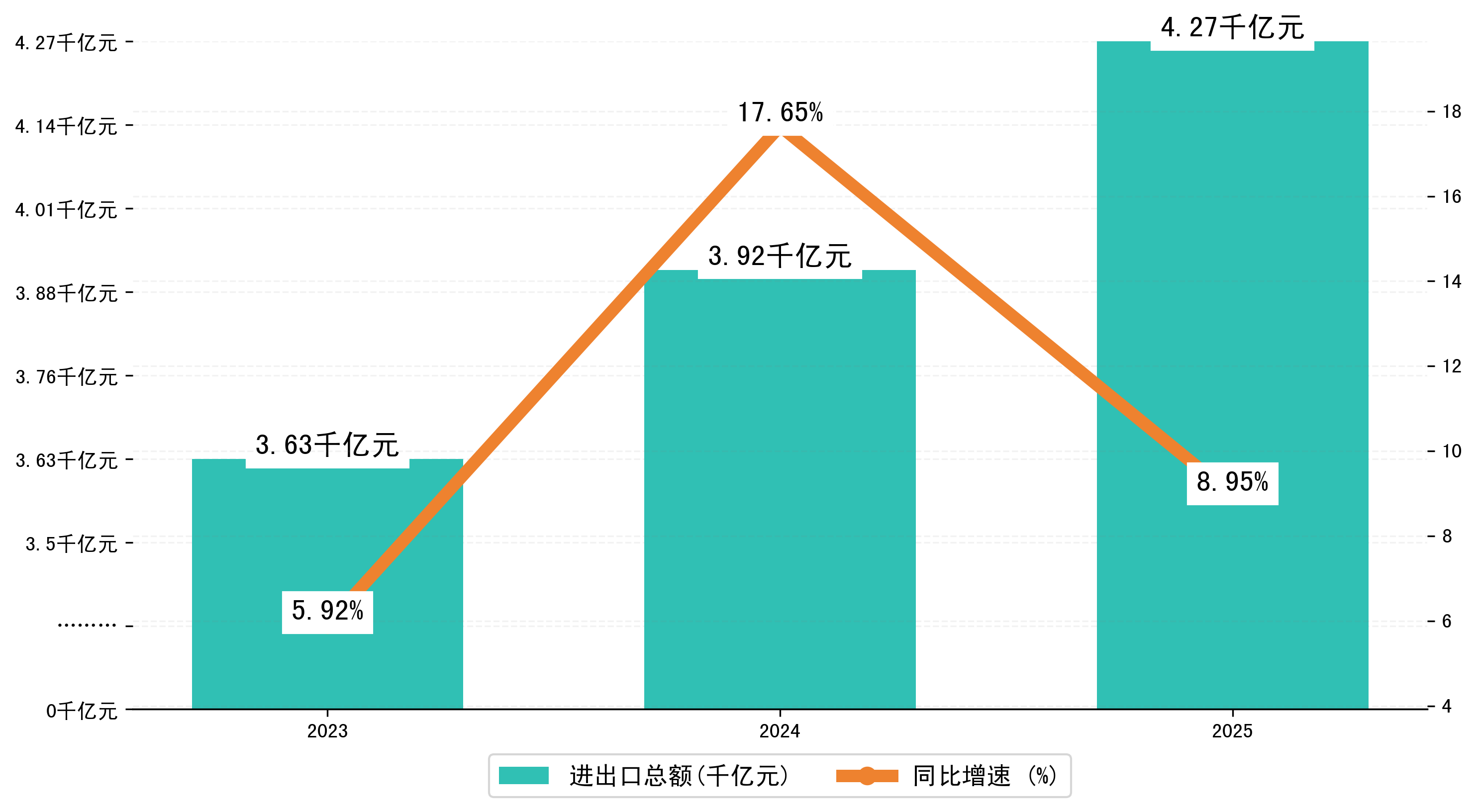 以人民币计,2025年1-6月成都市进出口总额为4268,3267.4926万元,相比上年同期增加了350,4670.9216万元,同比增加了9.50%。