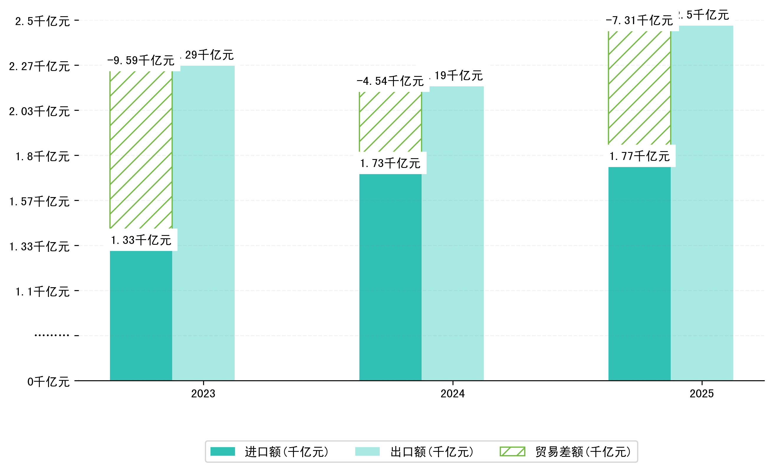 以人民币计,2025年1-6月成都市贸易差额为731,3020,3248万元(贸易顺差),相比上年同期增加了276,9475,2611万元,同比增加60.95%。