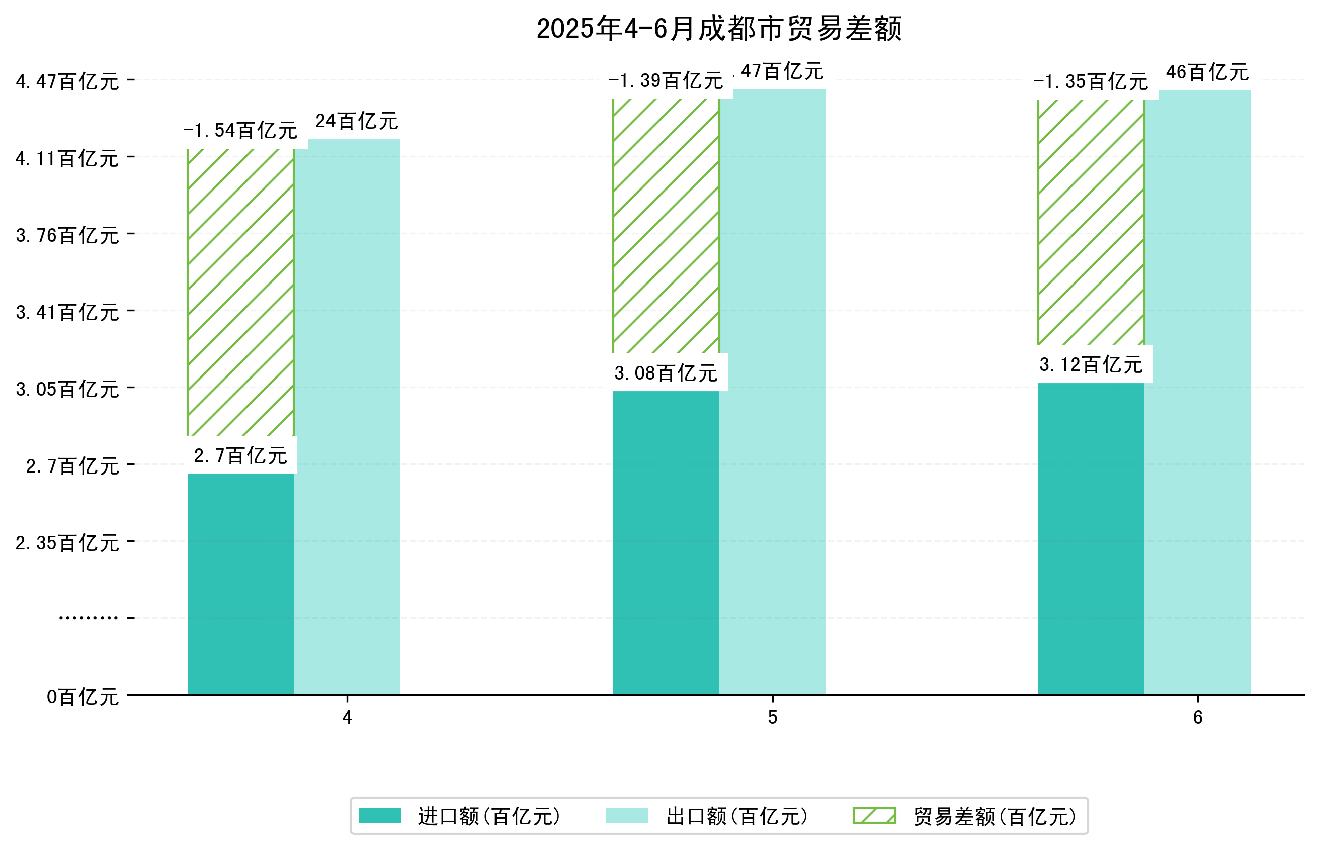 一、2025年6月成都市单月出口总额及进出口差额统计分析
