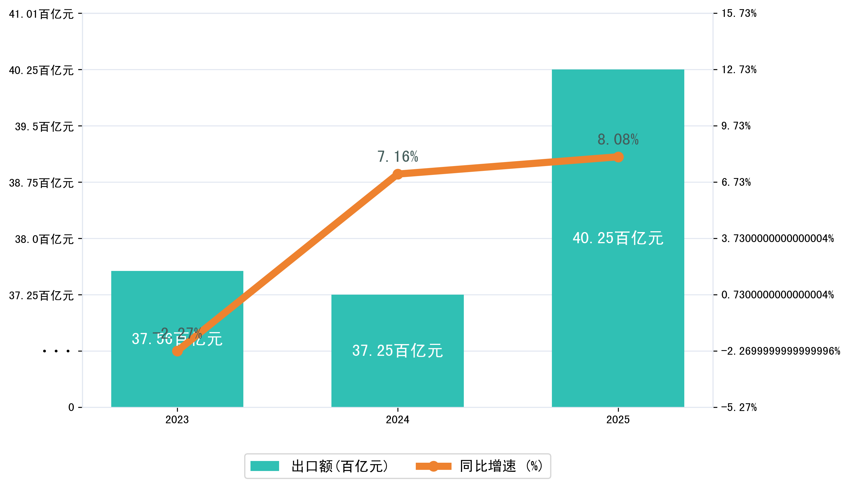 以人民币计,2025年1-10月成都市出口额为4025,3915.6086万元,相比上年同期增加了300,8212.3441万元,同比增加了8.00%。