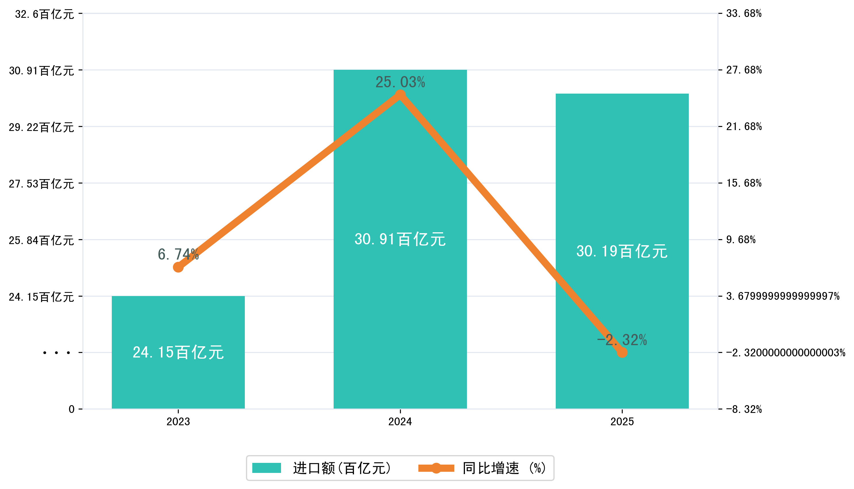 以人民币计,2025年1-10月成都市进口额为3019,0366.4543万元,相比上年同期减少了71,6605.4255万元,同比减少了-1.90%。