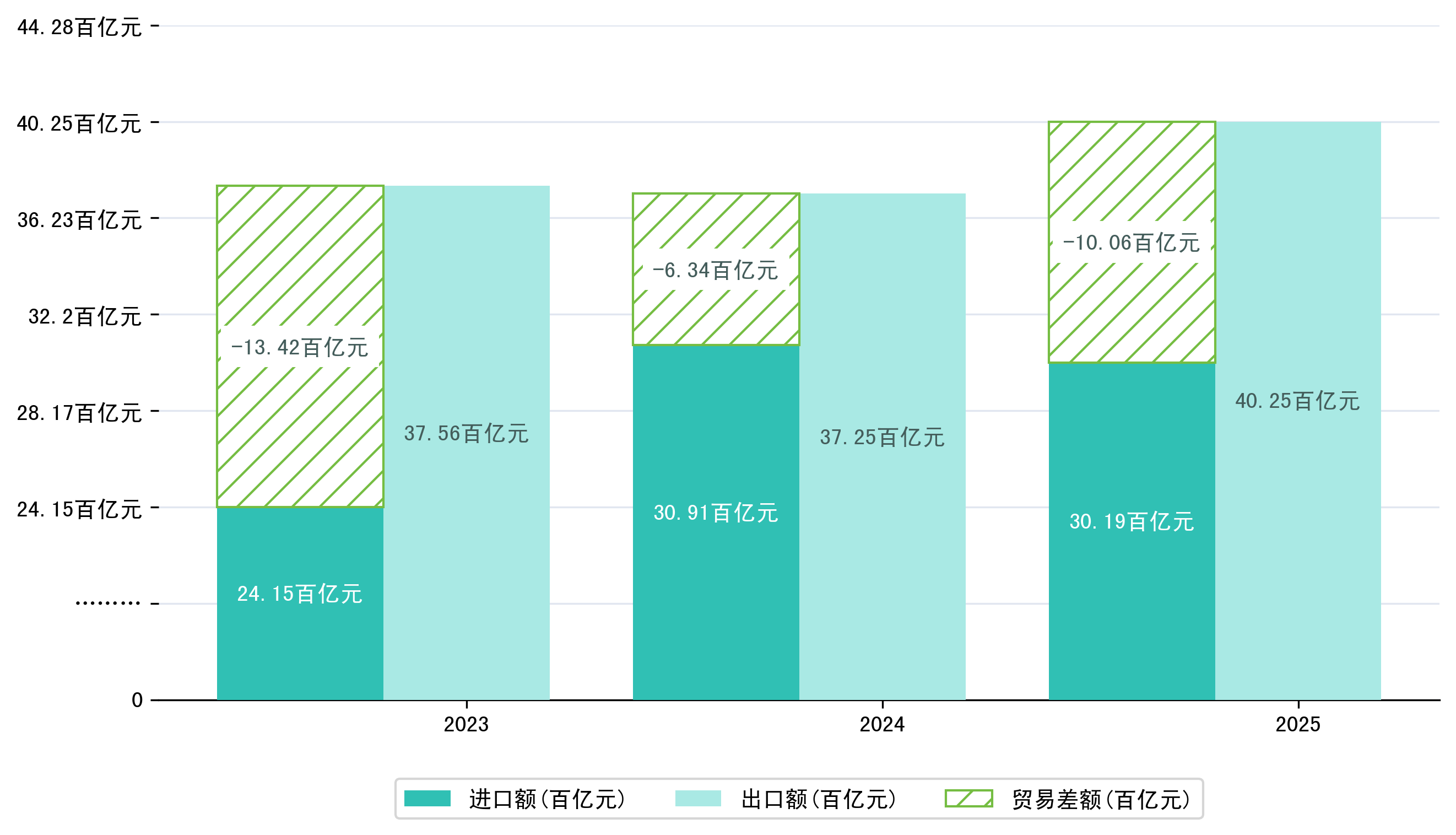 以人民币计,2025年1-10月成都市贸易差额为1006,3549,1543万元(贸易顺差),相比上年同期增加了372,4817,7696万元,同比增加58.76%。