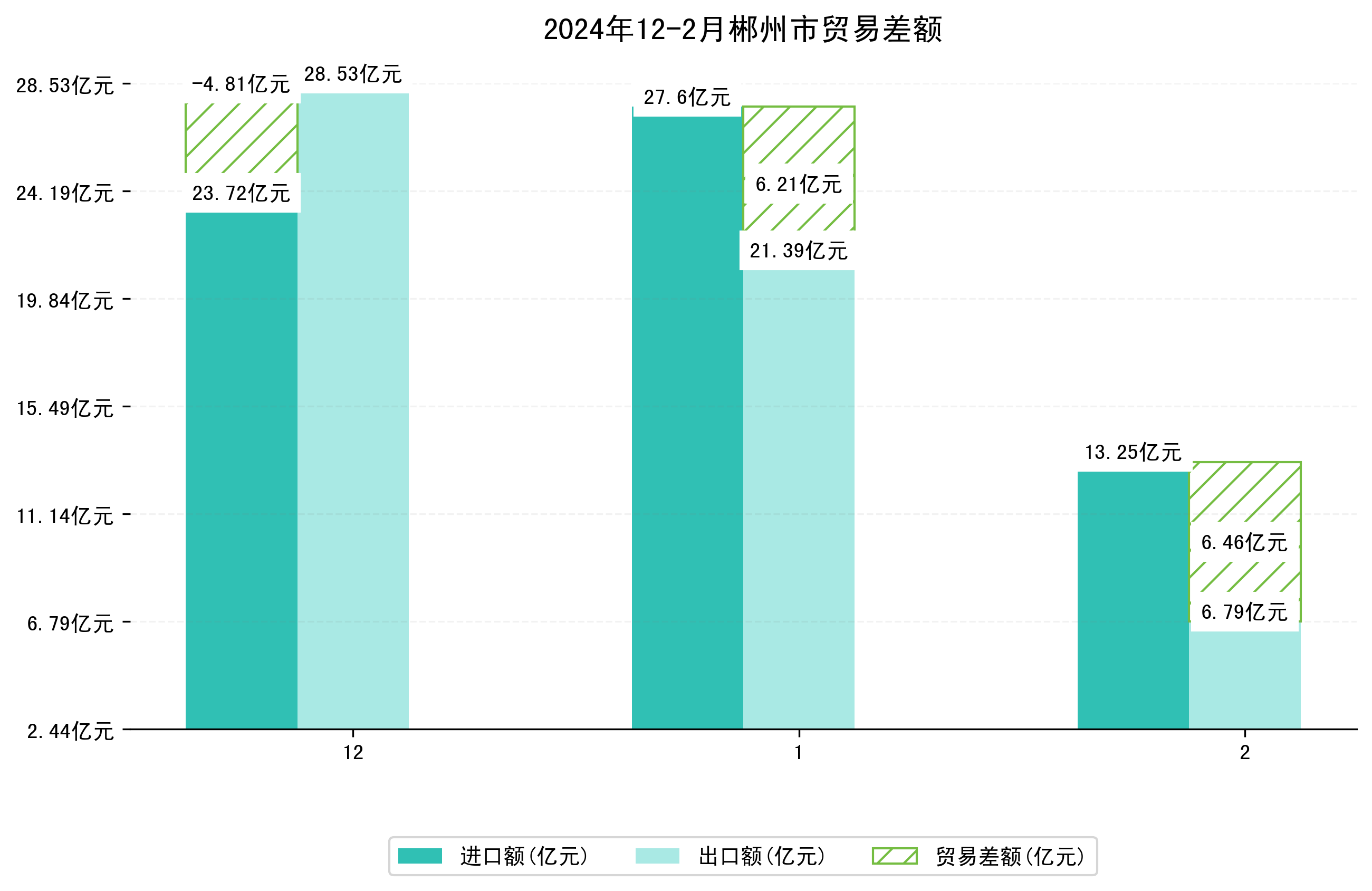 2024年2月郴州市进出口总额及进出口差额统计分析