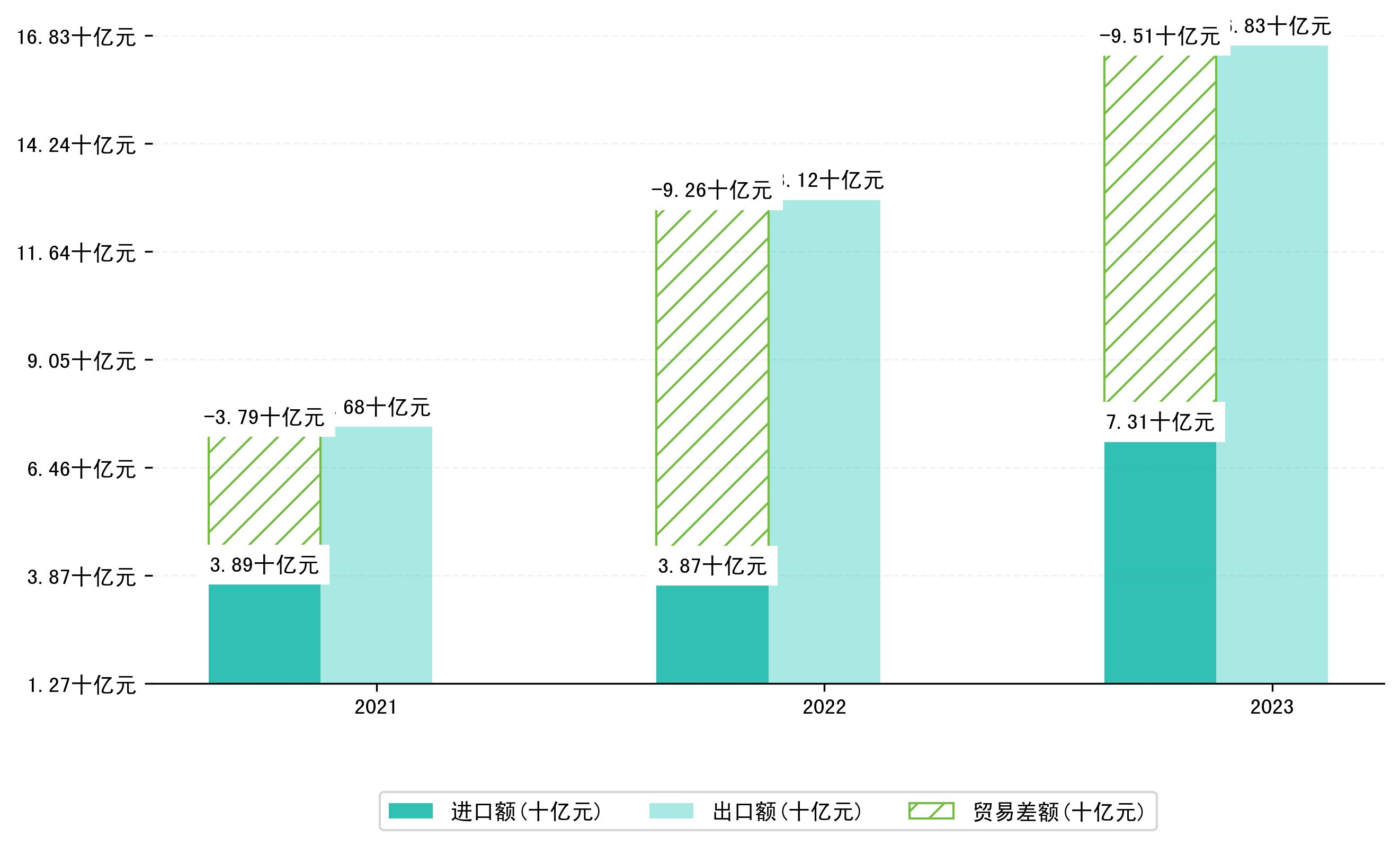 以人民币计,2023年1-5月郴州市贸易差额为95,1470,1911万元(贸易顺差),相比上年同期增加了2,5884,0588万元,同比增加2.8%。
