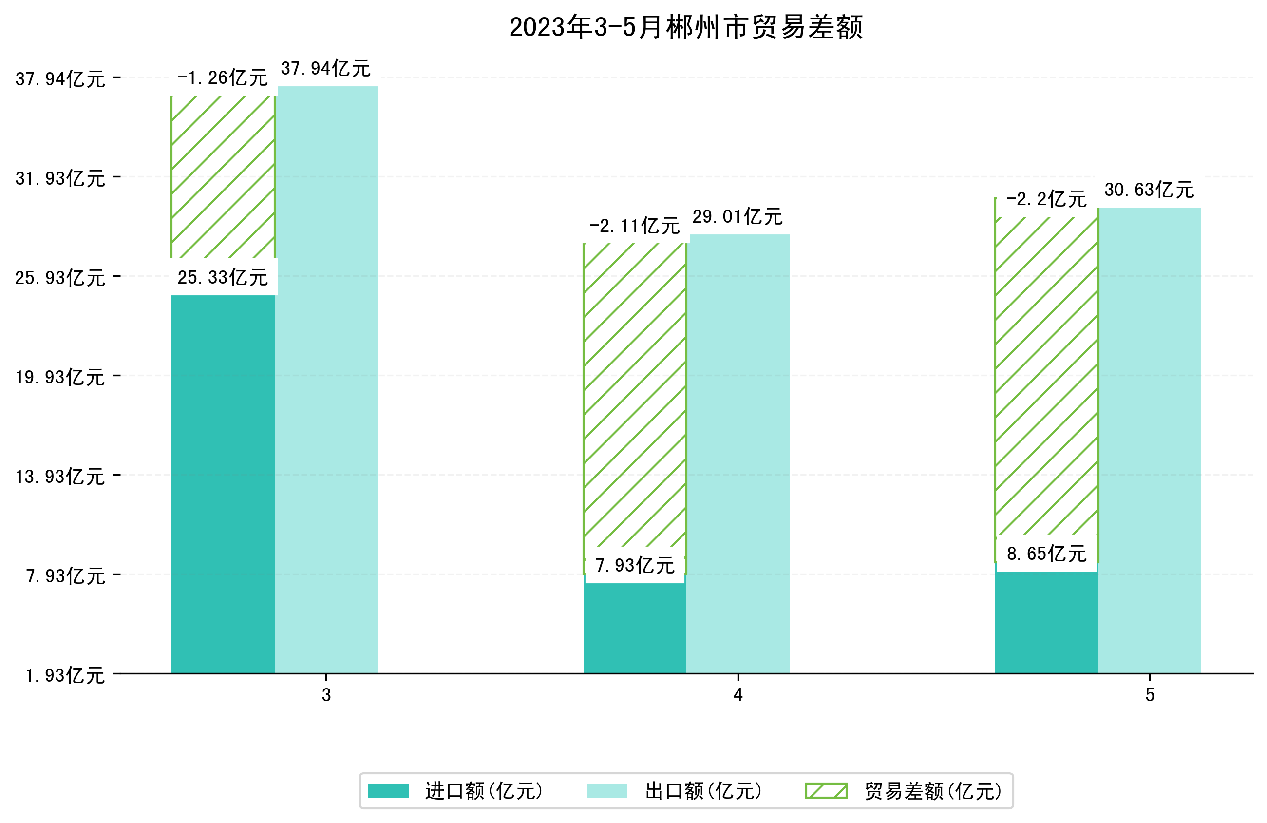2023年5月郴州市进出口总额及进出口差额统计分析