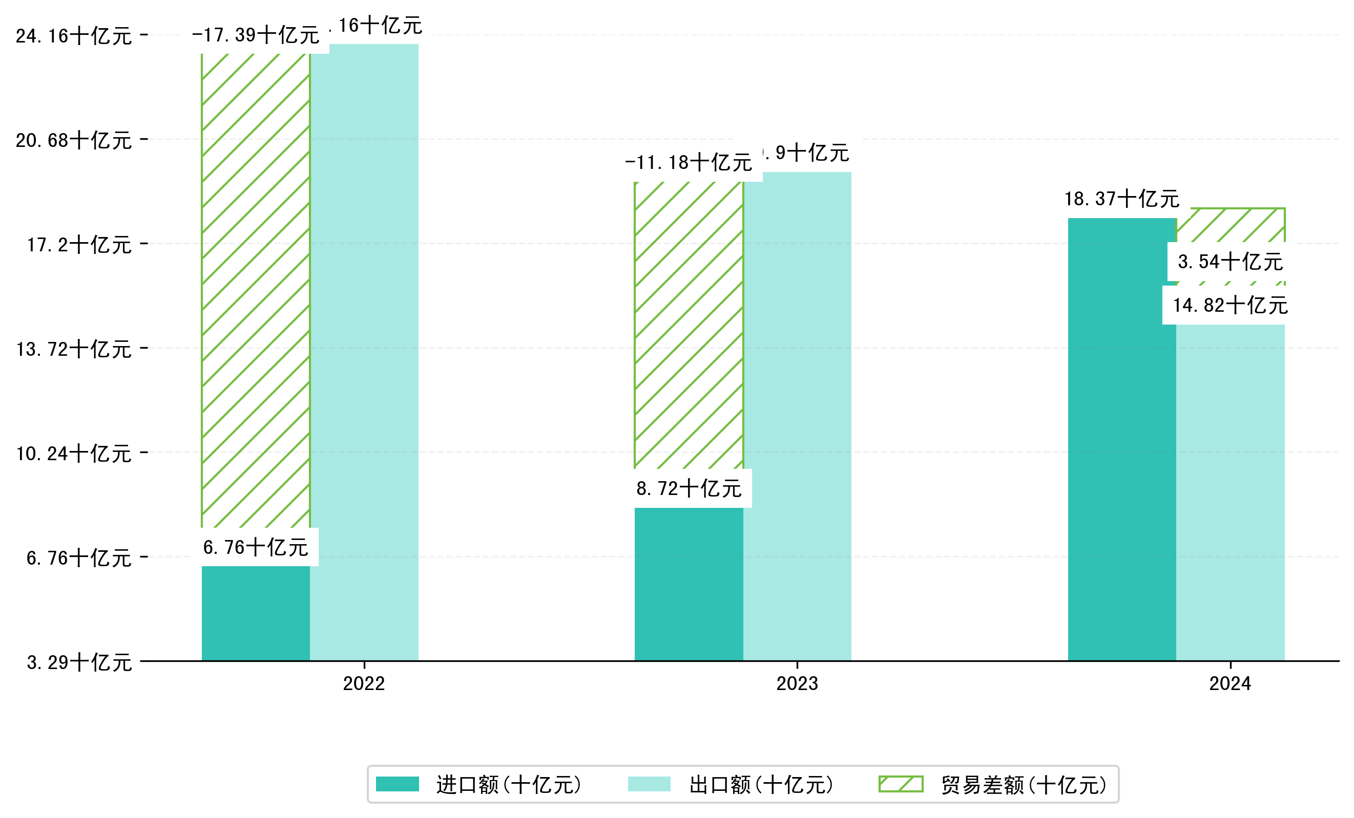 以美元计,2024年1-8月郴州市贸易差额为4,9972,1953万美元(贸易逆差),相比上年同期减少了21,1826,9849万美元,同比减少-130.87%。