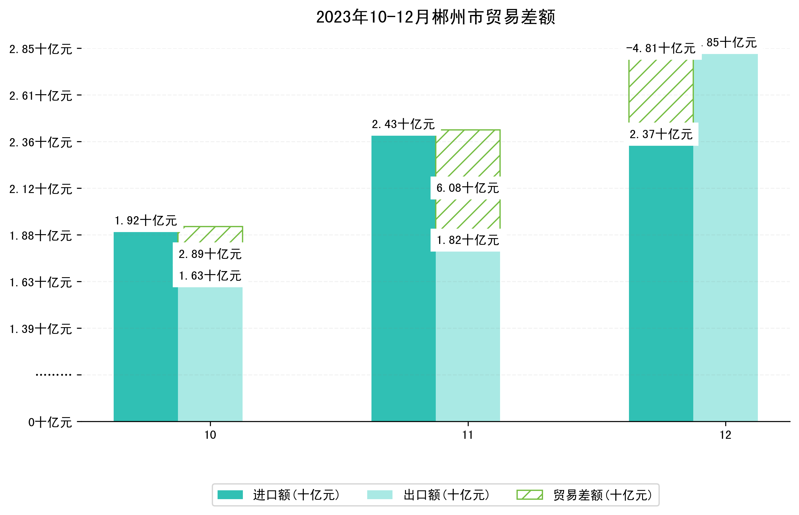 2023年12月郴州市进出口总额及进出口差额统计分析