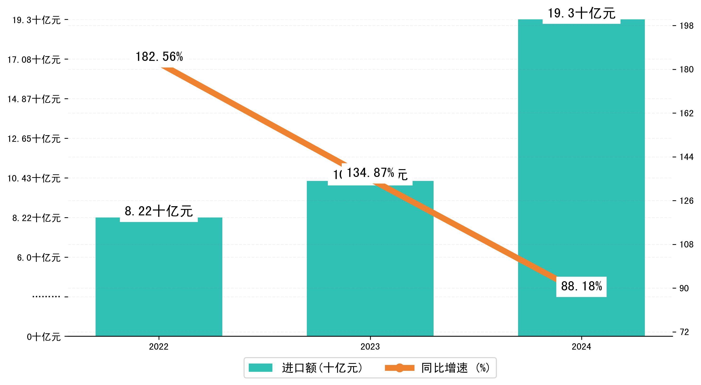 以人民币计,2024年1-9月郴州市进口额为192,9850.1885万元,相比上年同期增加了90,4322.3224万元,同比增加了88.60%。