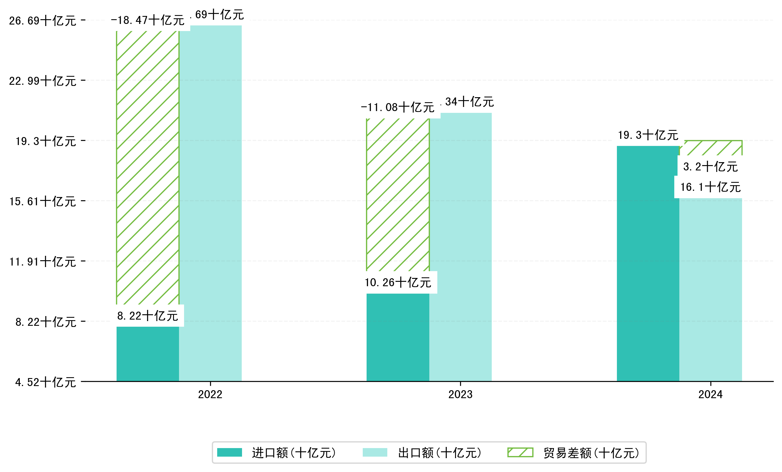 以美元计,2024年1-9月郴州市贸易差额为4,5114,7838万美元(贸易逆差),相比上年同期减少了20,5600,3187万美元,同比减少-128.11%。