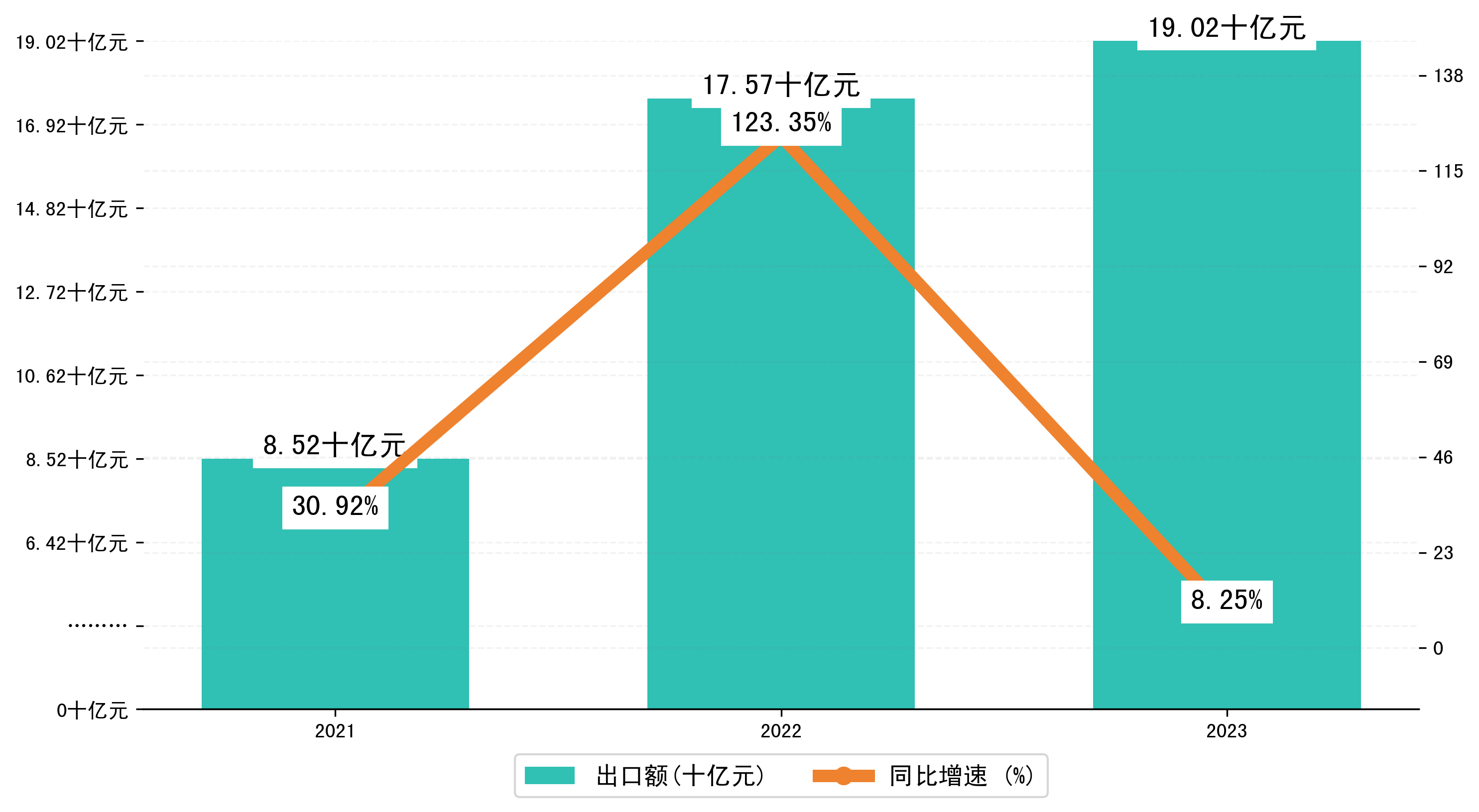 以美元计,2023年1-6月郴州市出口额为27,6469.081万美元,相比上年同期增加了4321.8466万美元,同比增加48.30%。