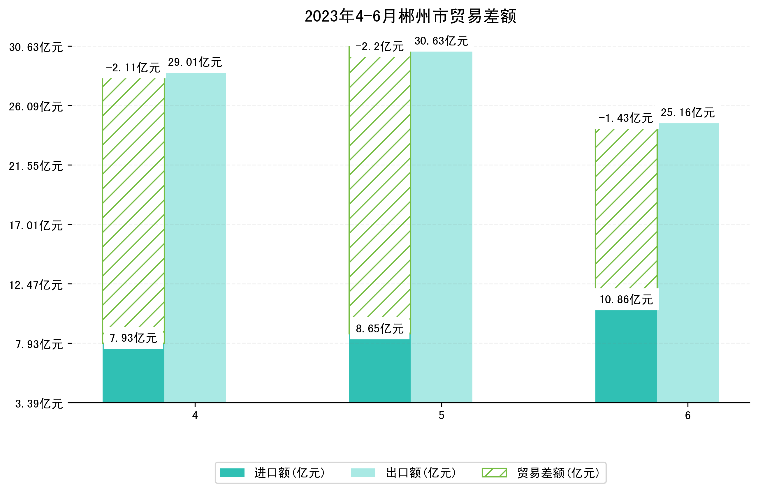 2023年6月郴州市进出口总额及进出口差额统计分析