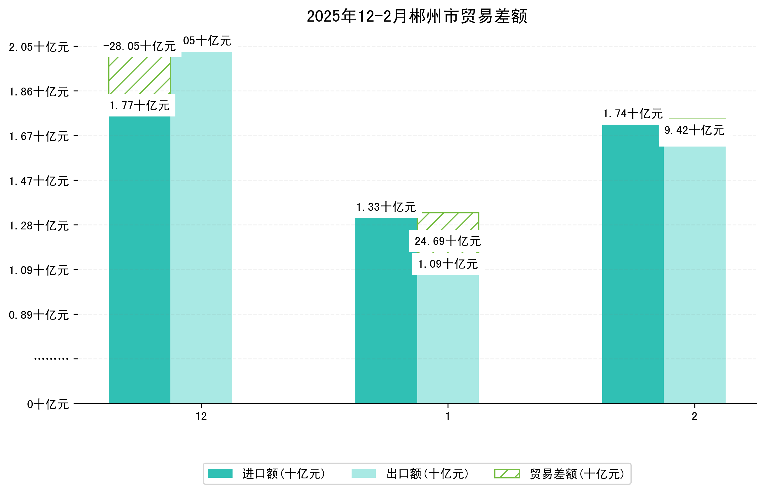 2025年2月郴州市进出口总额及进出口差额统计分析