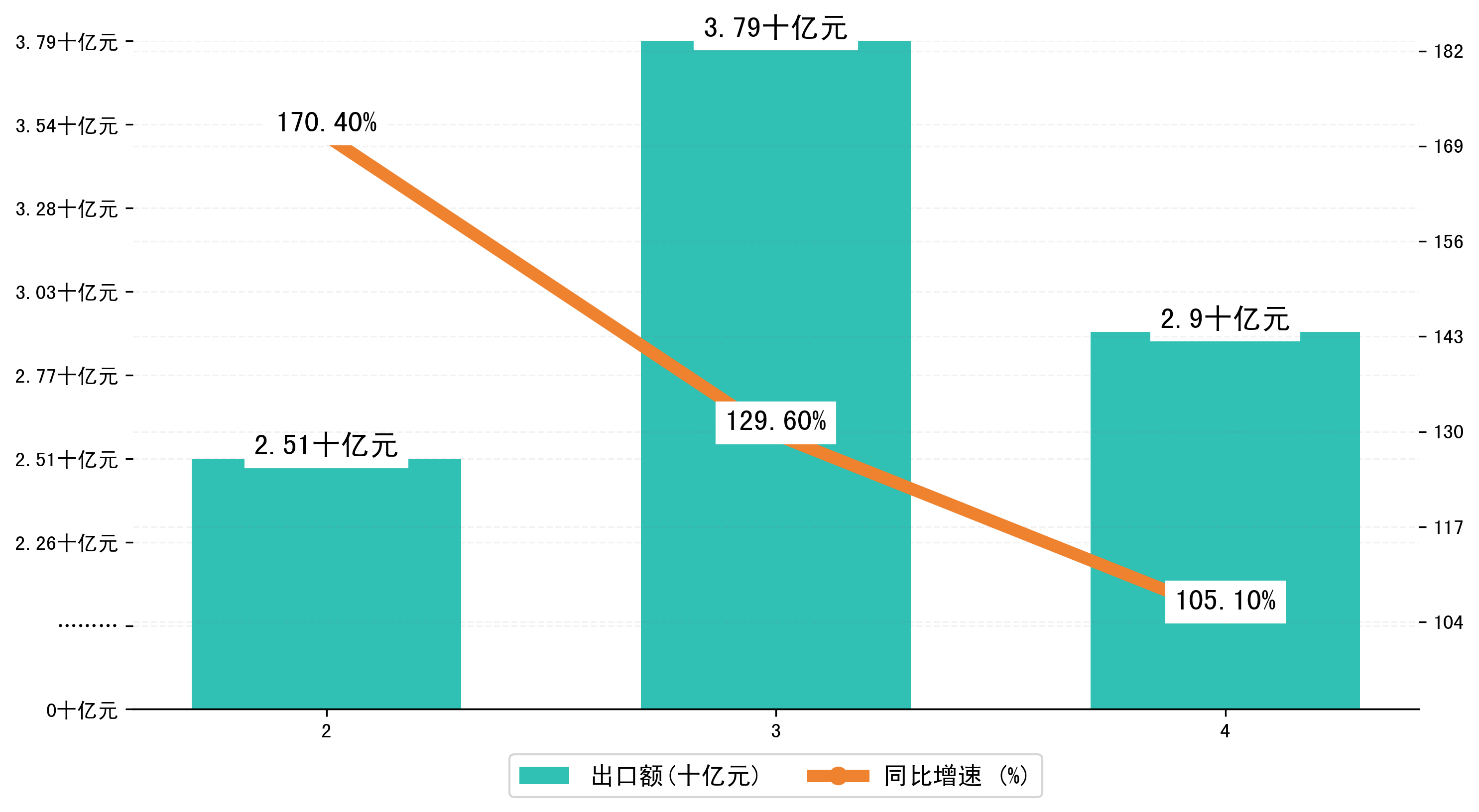 以人民币计,2023年4月郴州市出口额为29,0105.168万元,相比上月减少了8,9249.9055万元;相比上年同期增加了2,7525.7994万元,同比增加了105.10%。