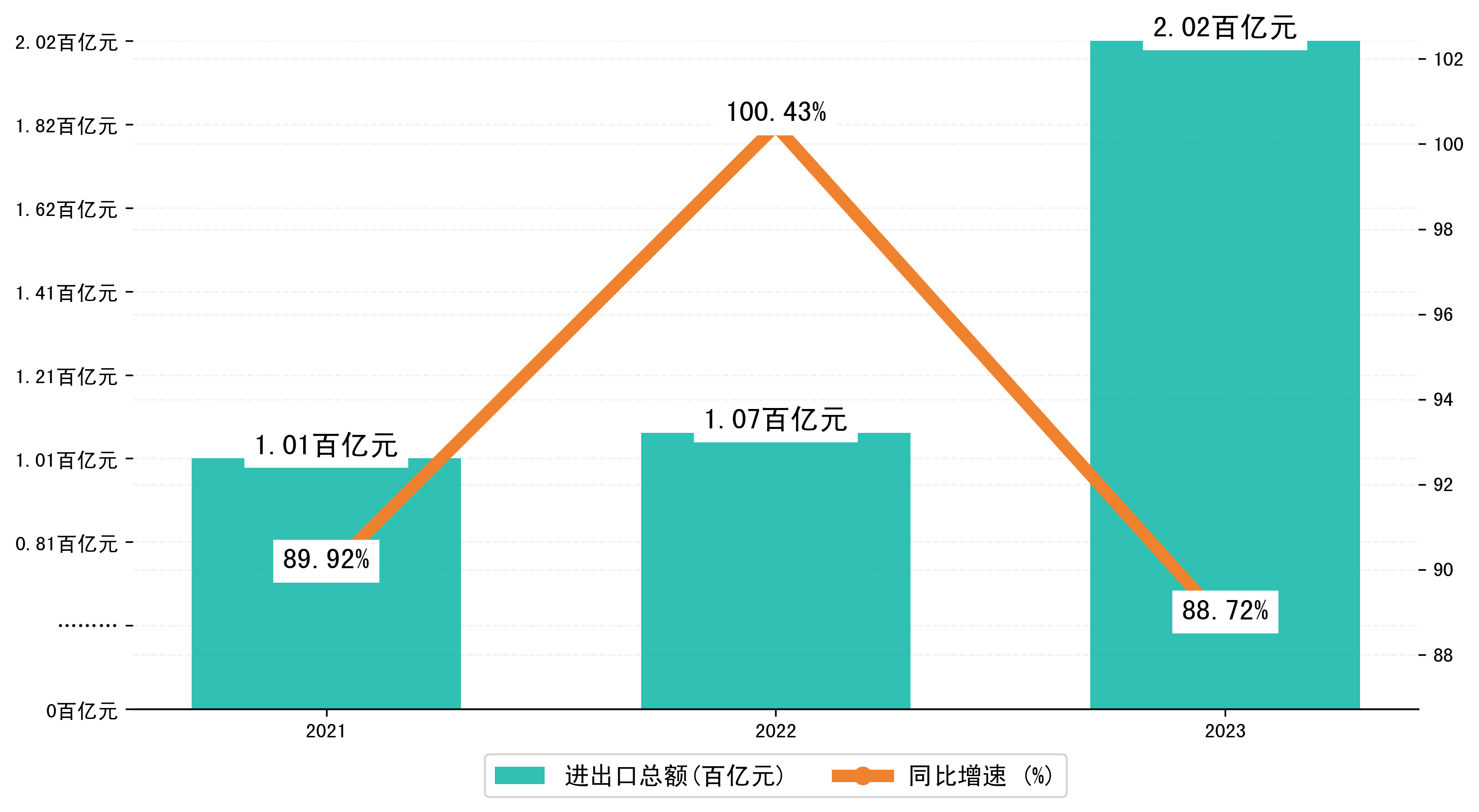 以美元计,2023年1-4月郴州市进出口总额为29,4596.1545万美元,相比上年同期增加了12,6272.9888万美元,同比增加120.70%。