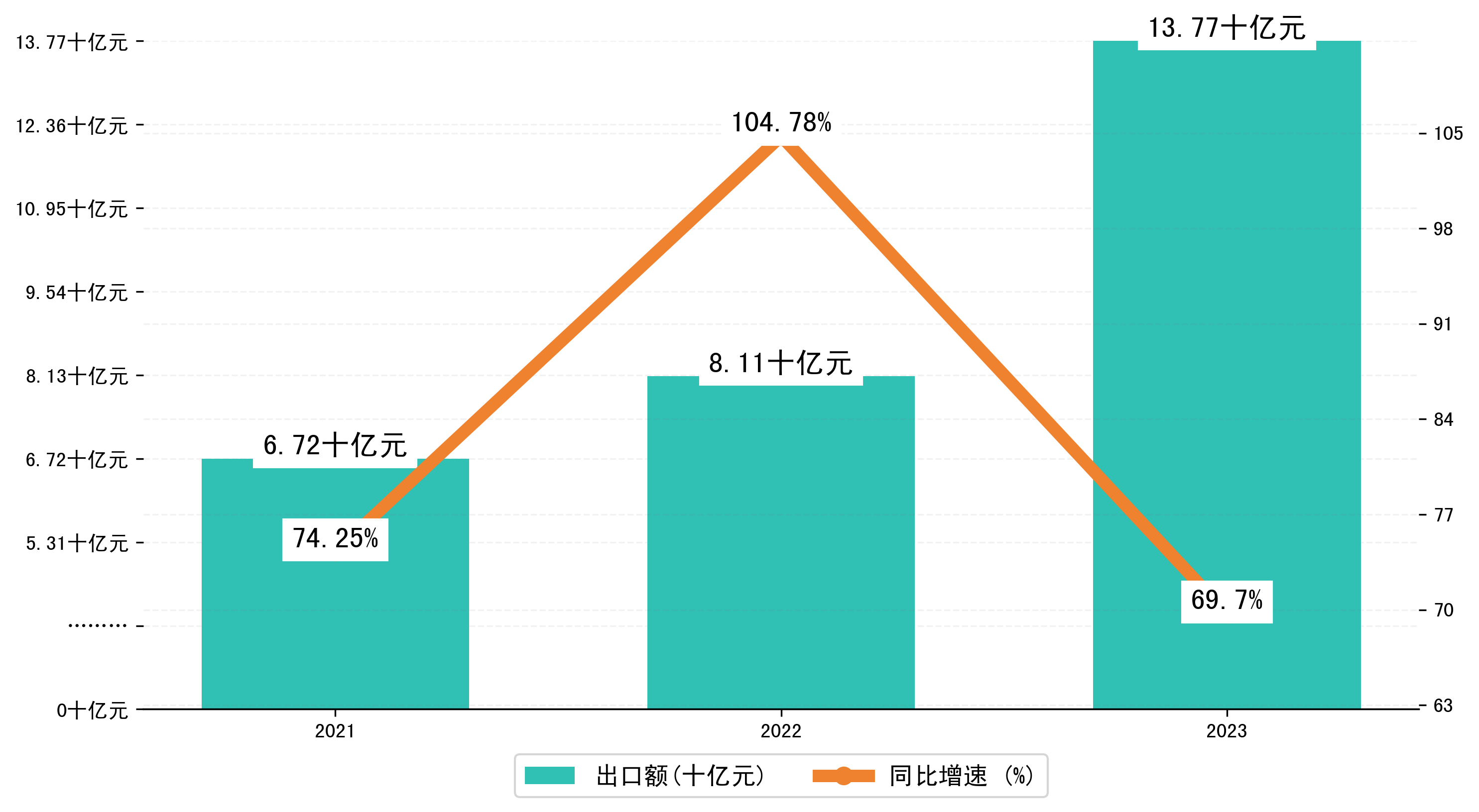 以人民币计,2023年1-4月郴州市出口额为137,6667.4846万元,相比上年同期增加了56,5410.8万元,同比增加了105.10%。