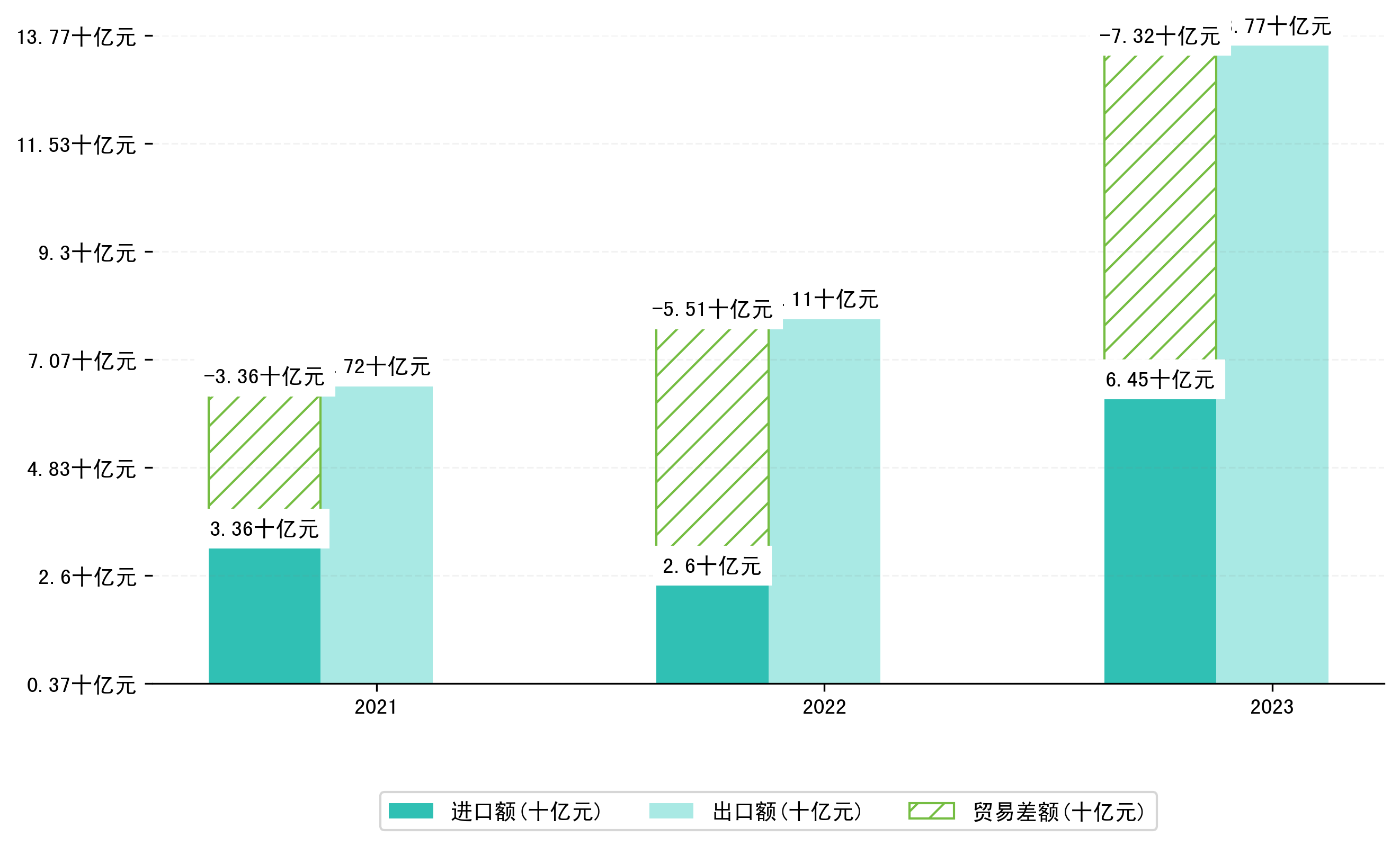 以美元计,2023年1-4月郴州市贸易差额为10,6312,9551万美元(贸易顺差),相比上年同期增加了1,9682,8428万美元,同比增加22.72%。