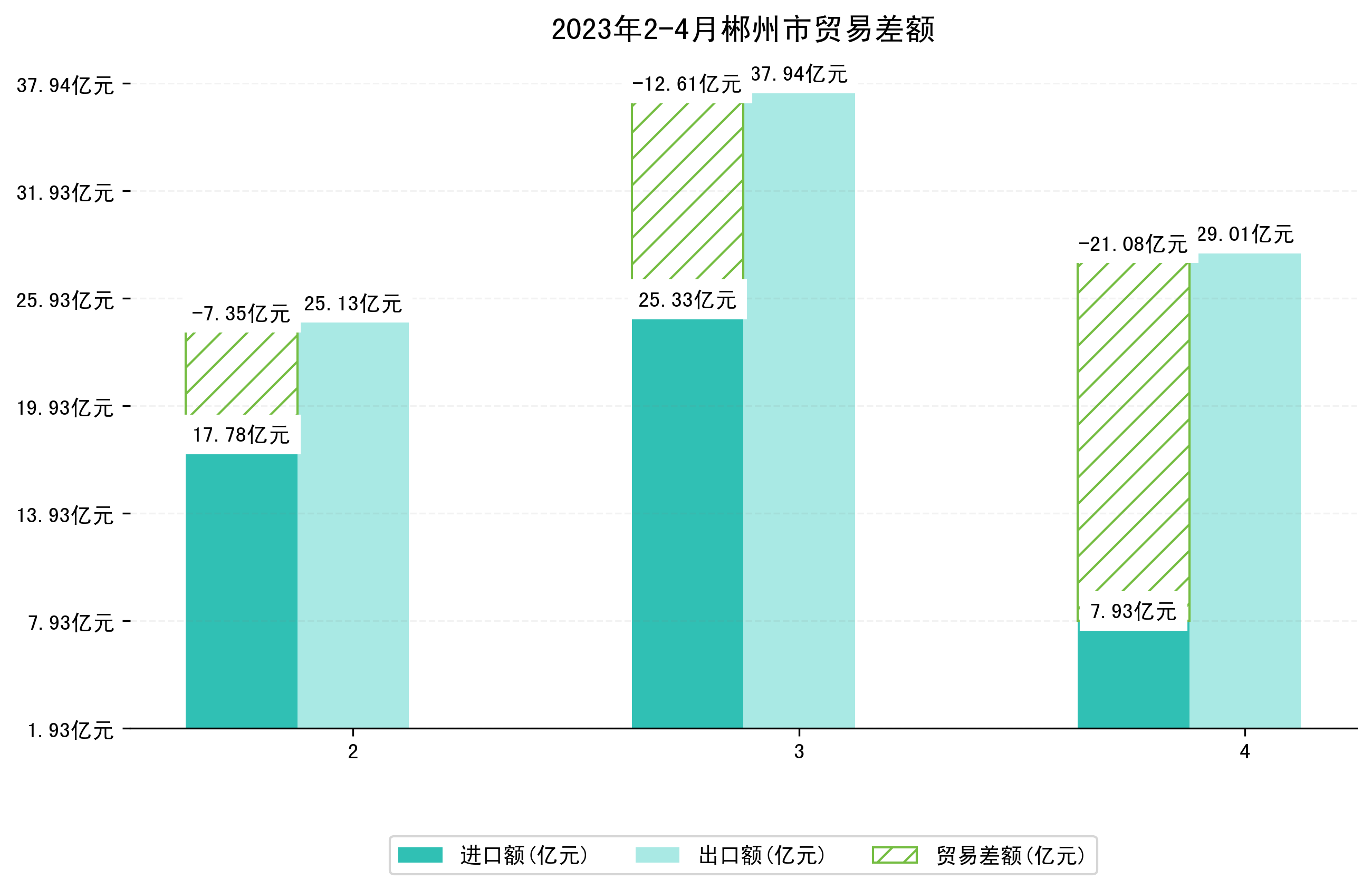 2023年4月郴州市进出口总额及进出口差额统计分析