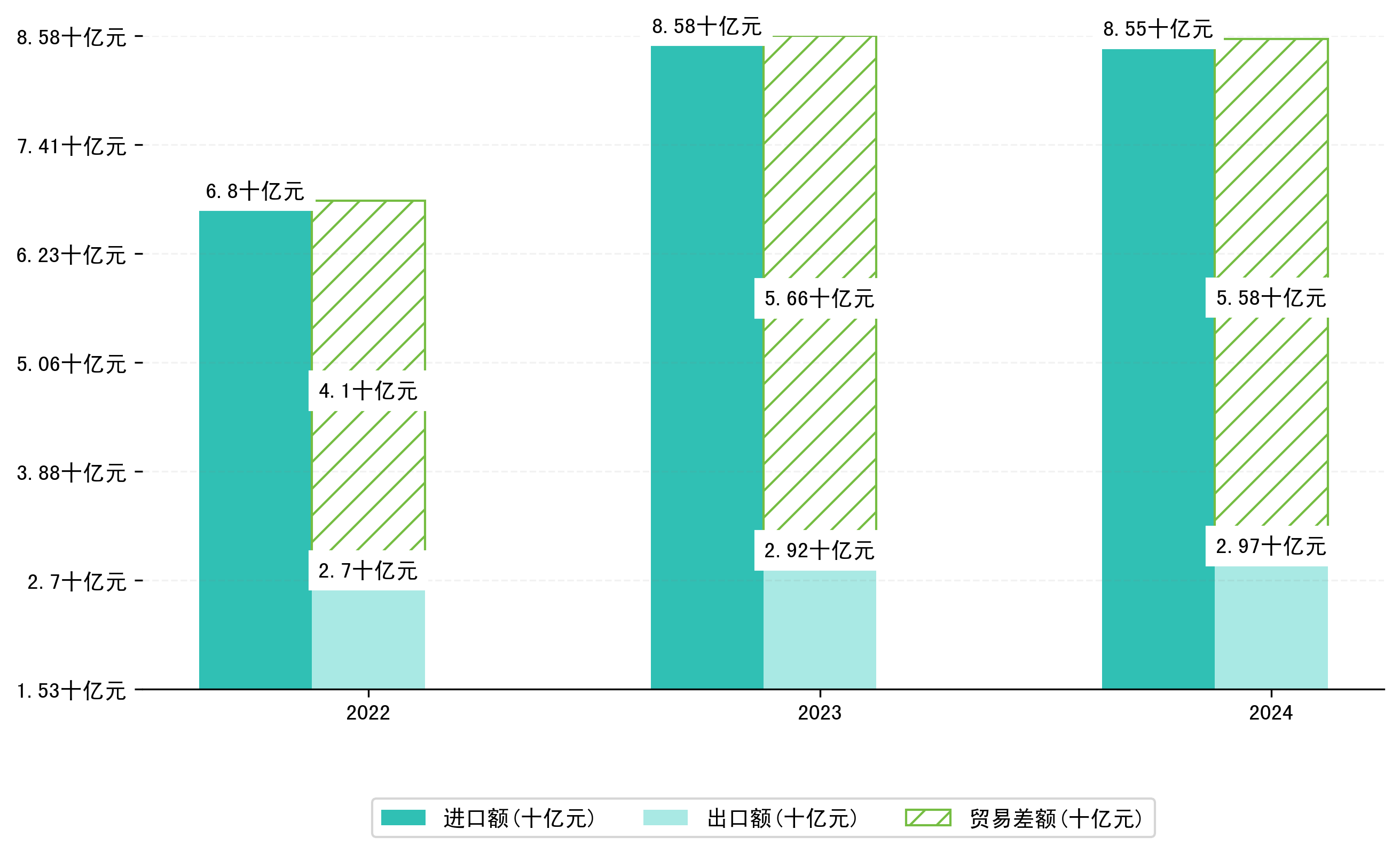 以美元计,2024年1-10月池州市贸易差额为7,8485,2504万美元(贸易逆差),相比上年同期增加了2568,6509万美元,同比增加-3.17%。