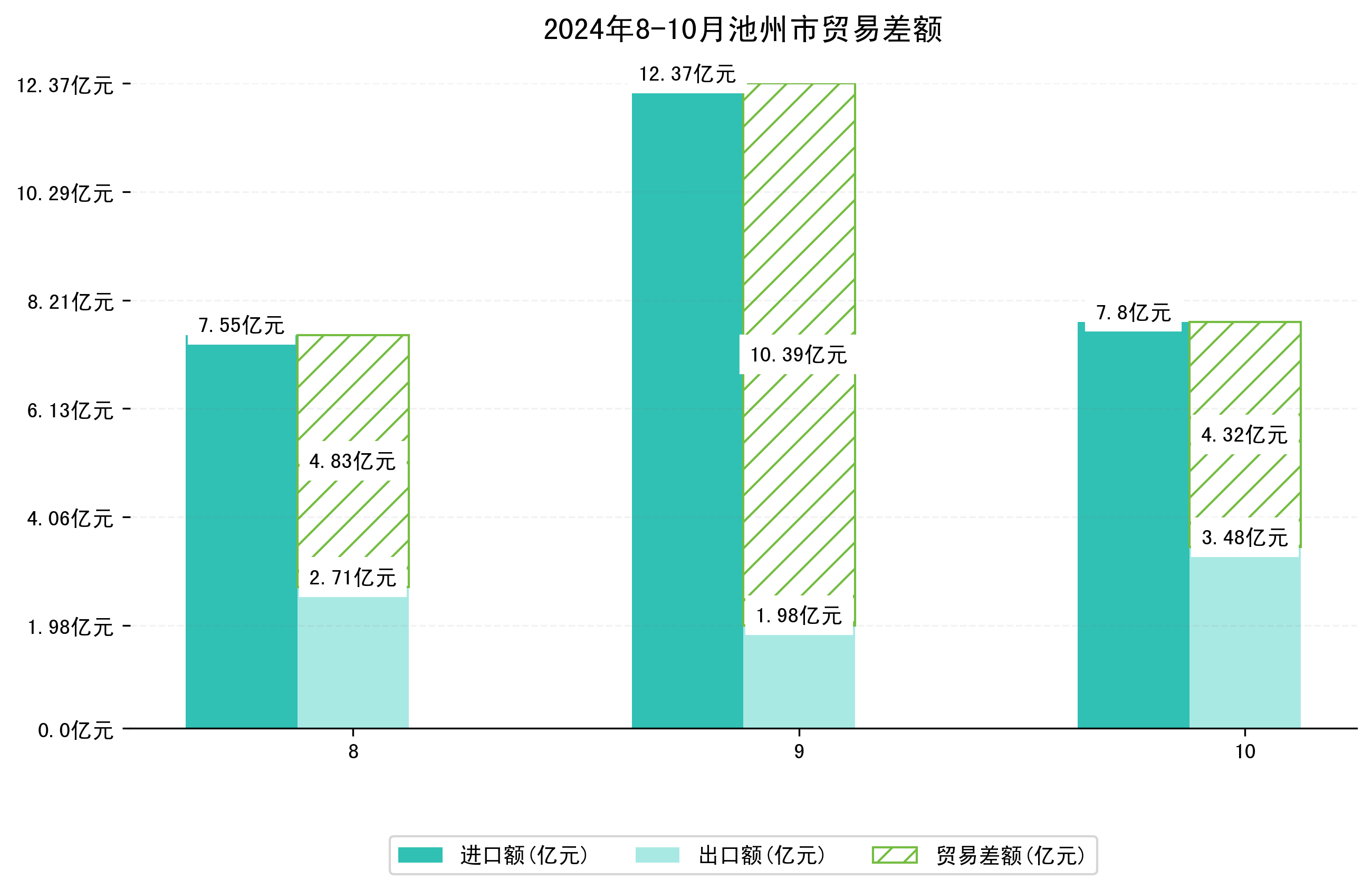 一、2024年10月池州市单月出口总额及进出口差额统计分析