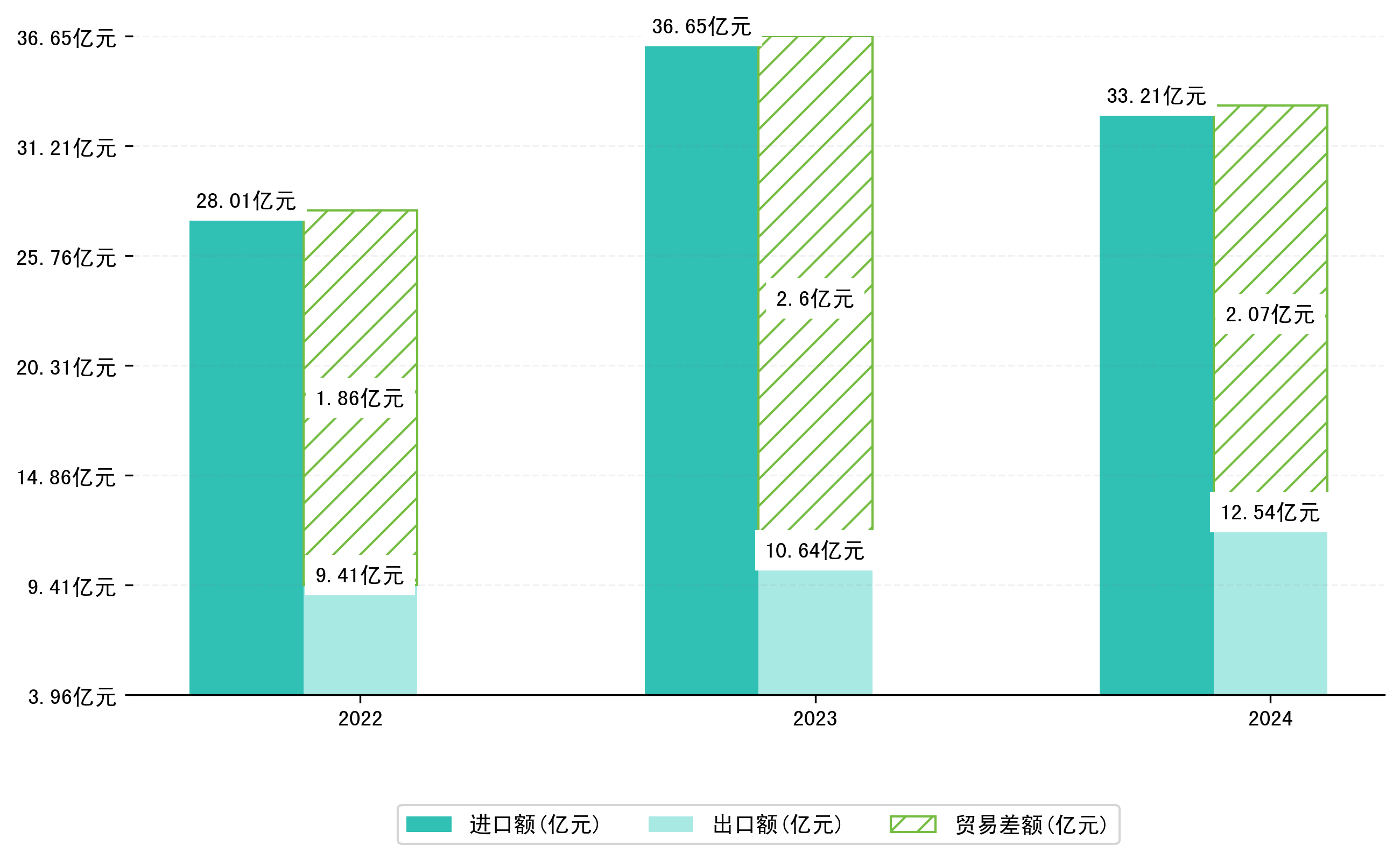 以人民币计,2024年1-4月池州市贸易差额为20,6689,4652万元(贸易逆差),相比上年同期增加了5,3444,1986万元,同比增加-20.54%。