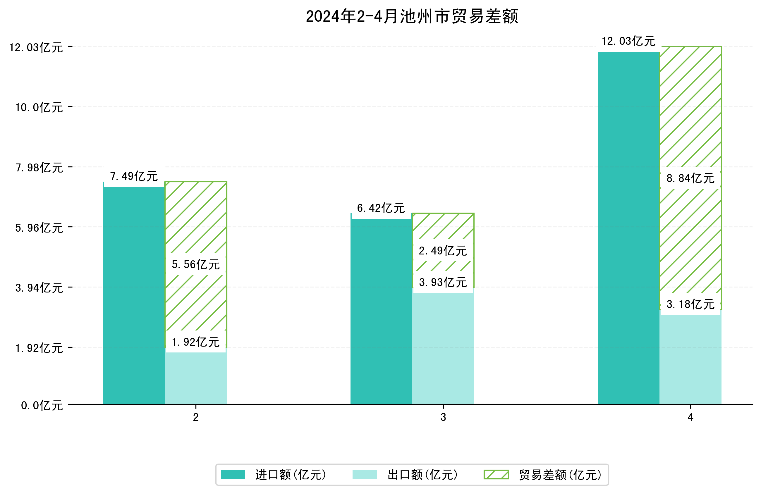一、2024年4月池州市单月出口总额及进出口差额统计分析