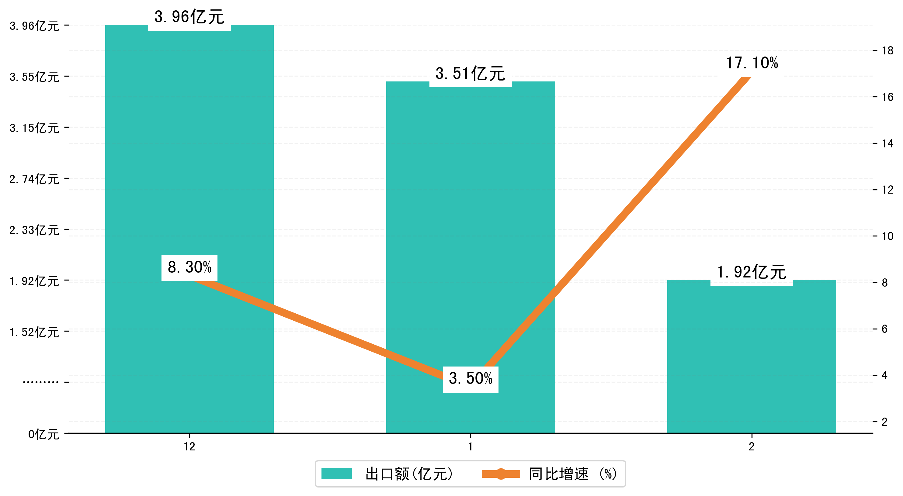 以美元计,2024年1-2月池州市出口额为7646.0838万美元,相比上年同期增加了955.0212万美元,同比增加14.30%。