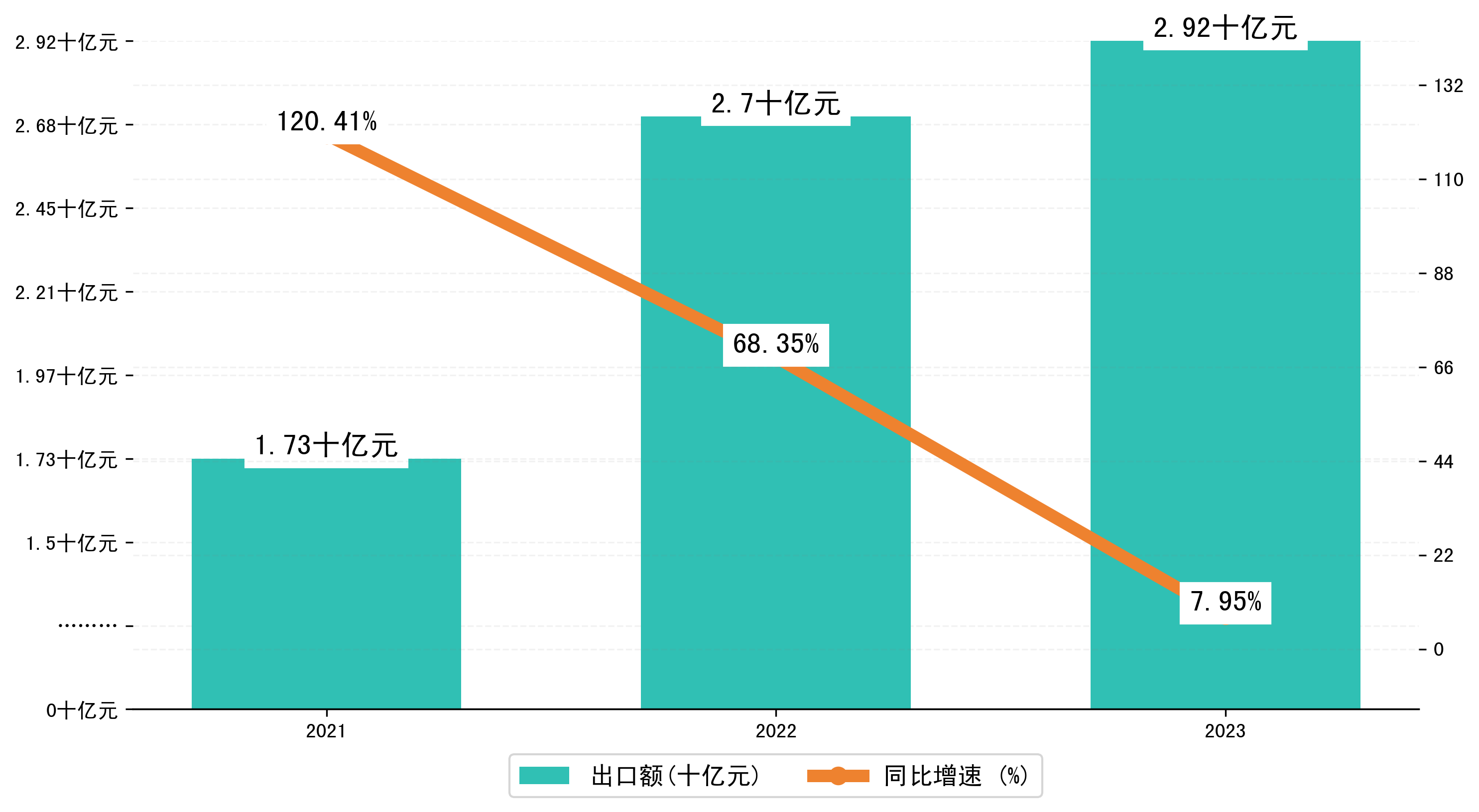 以人民币计,2023年1-10月池州市出口额为29,1949.8952万元,相比上年同期增加了2,1492.6368万元,同比增加了8.80%。