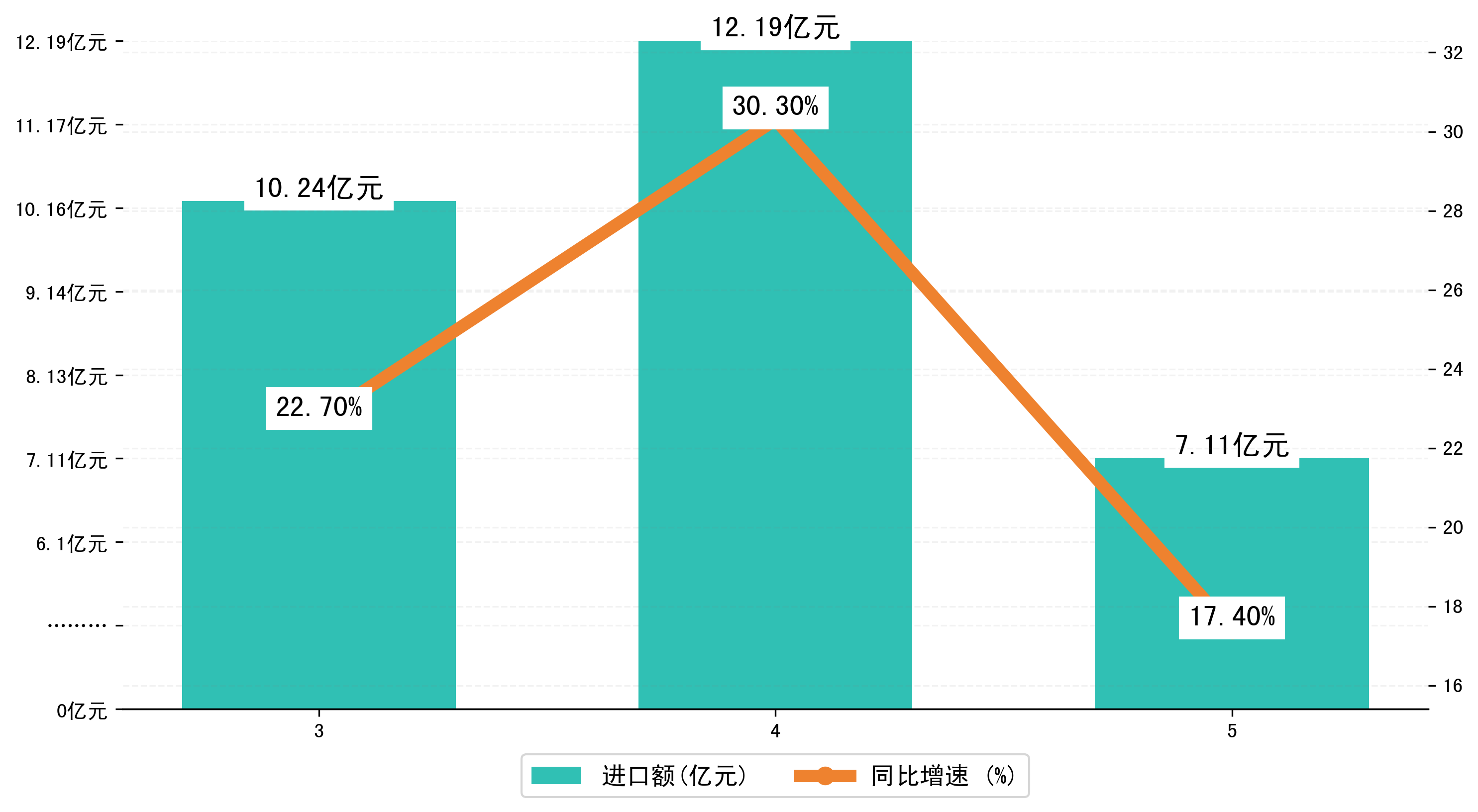 以人民币计,2023年1-5月池州市进口额为43,7619.6225万元,相比上年同期增加了6,4026.2742万元,同比增加了17.40%。