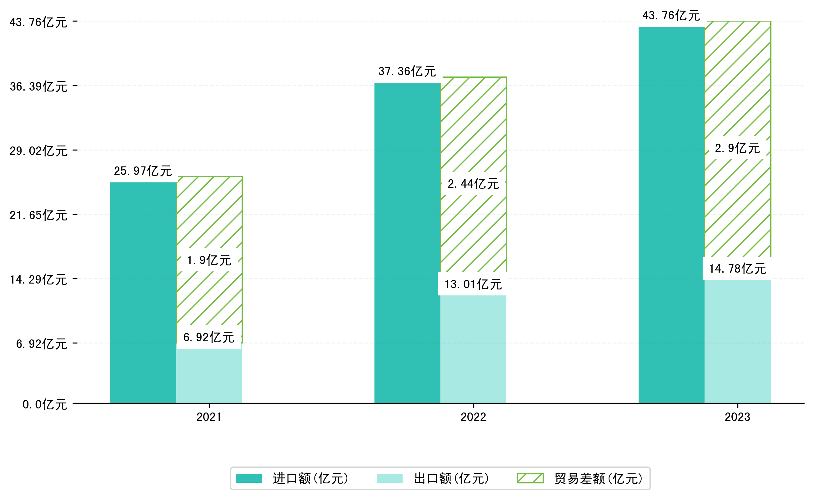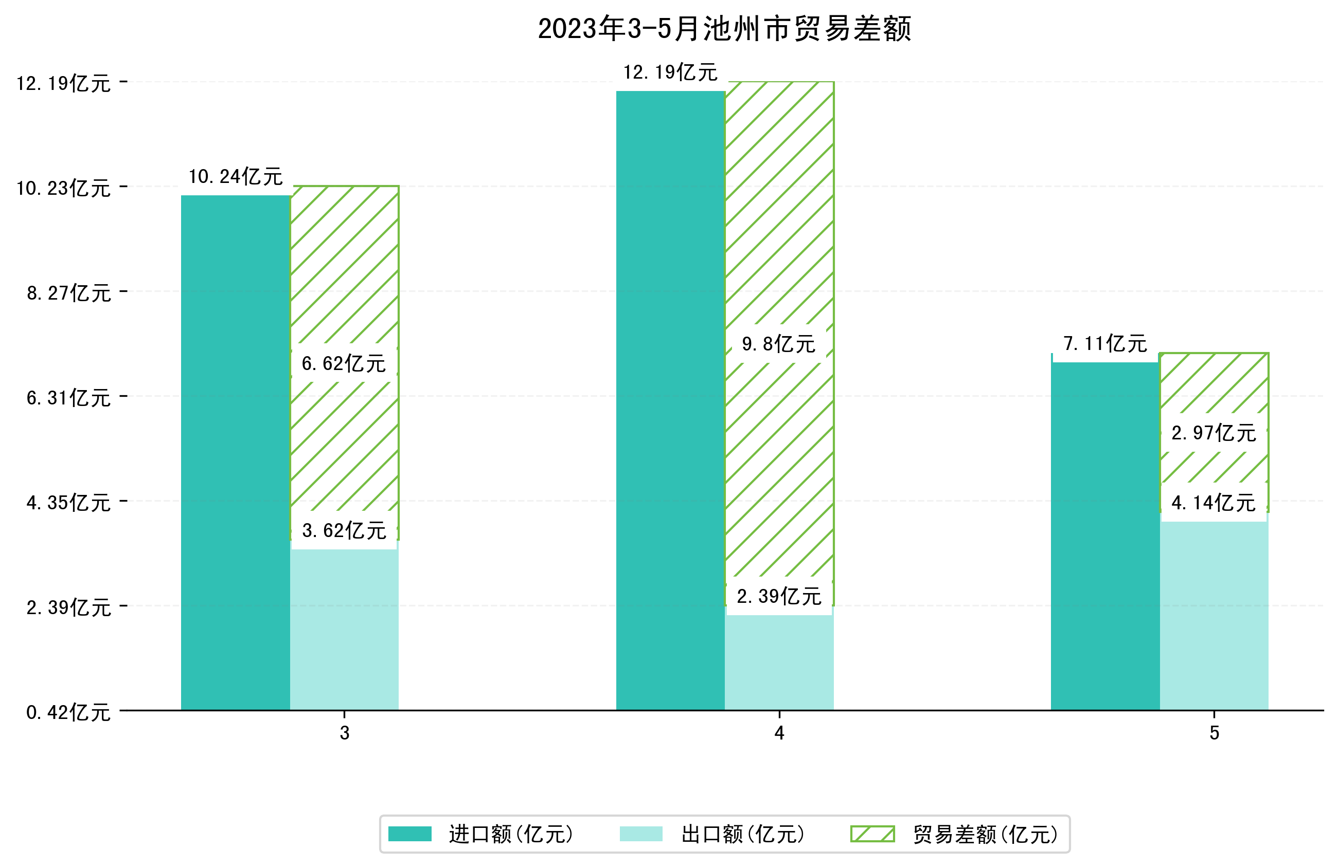 以美元计,2023年1-5月池州市贸易差额为4,2292,2549万美元(贸易逆差),相比上年同期减少了4071,7715万美元,同比减少10.65%。