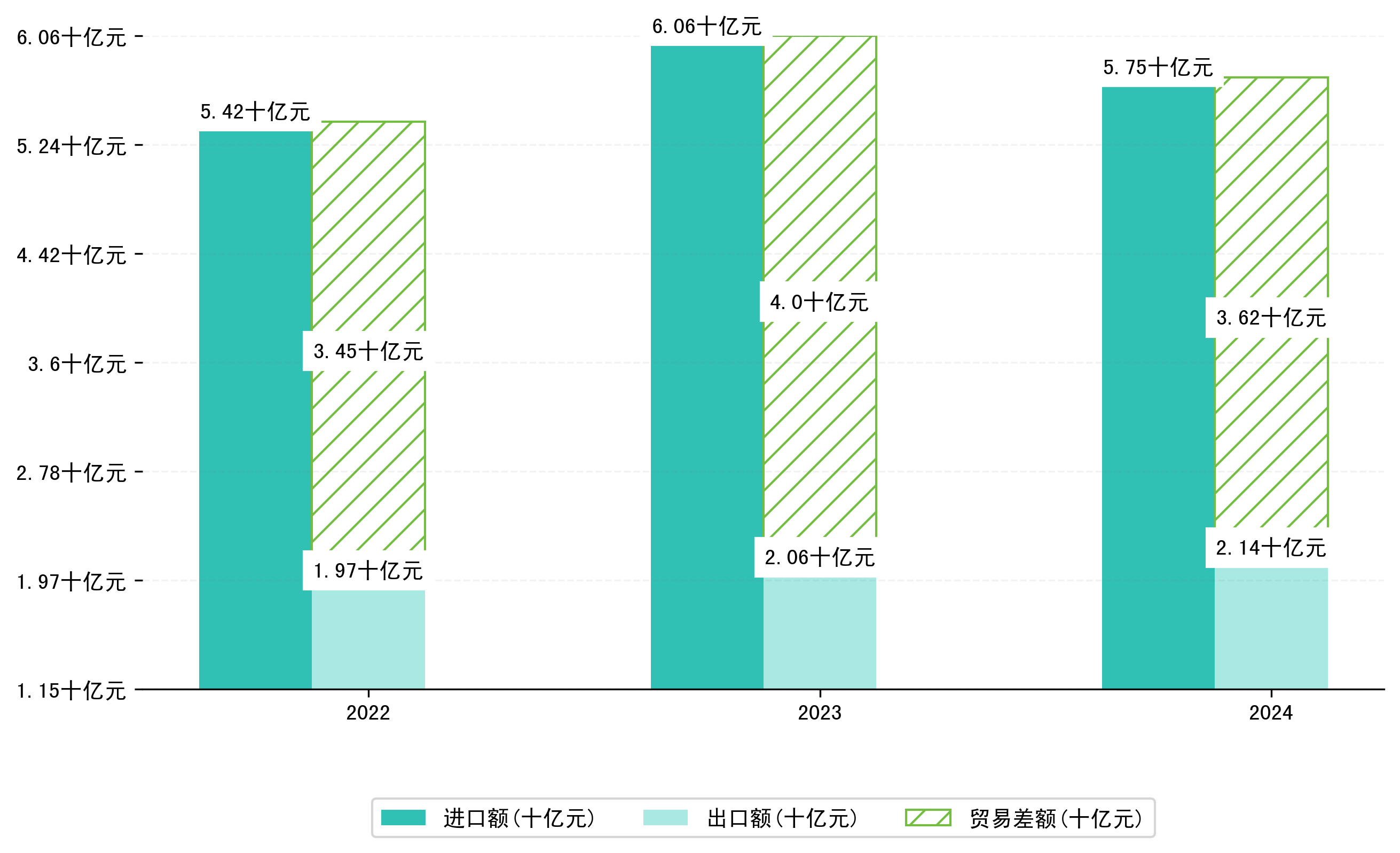 以人民币计,2024年1-7月池州市贸易差额为36,1553,5314万元(贸易逆差),相比上年同期增加了3,8273,4530万元,同比增加-9.57%。