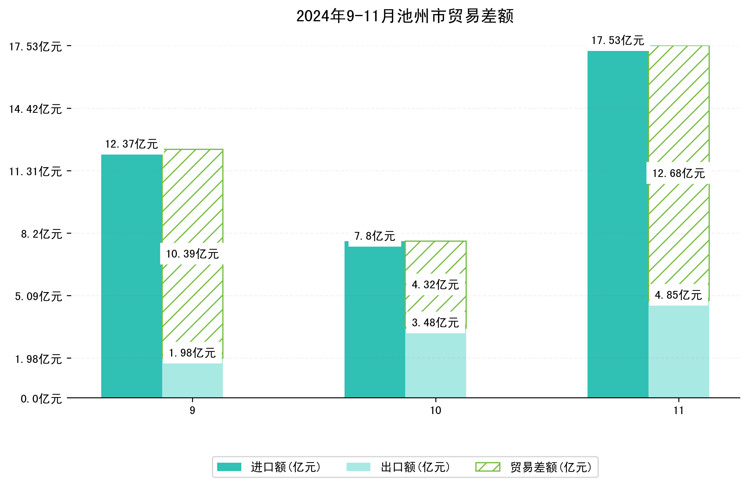 (图一:2024年9-11月池州市进出口总额)
