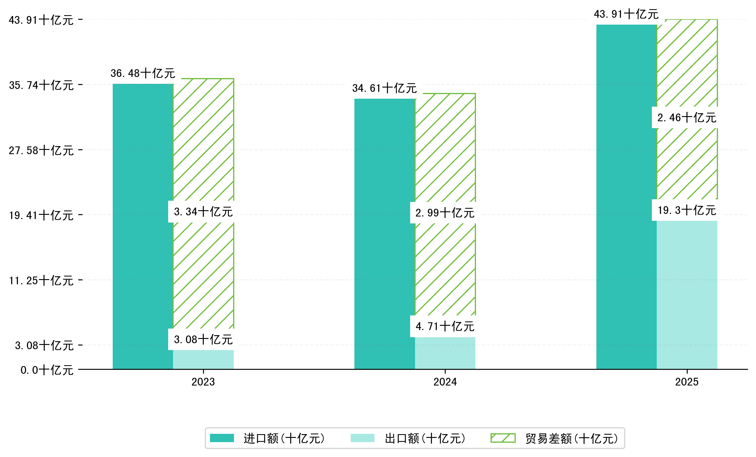 以人民币计,2025年1-5月防城港市贸易差额为246,0950,1337万元(贸易逆差),相比上年同期增加了52,8674,3011万元,同比增加-17.68%。