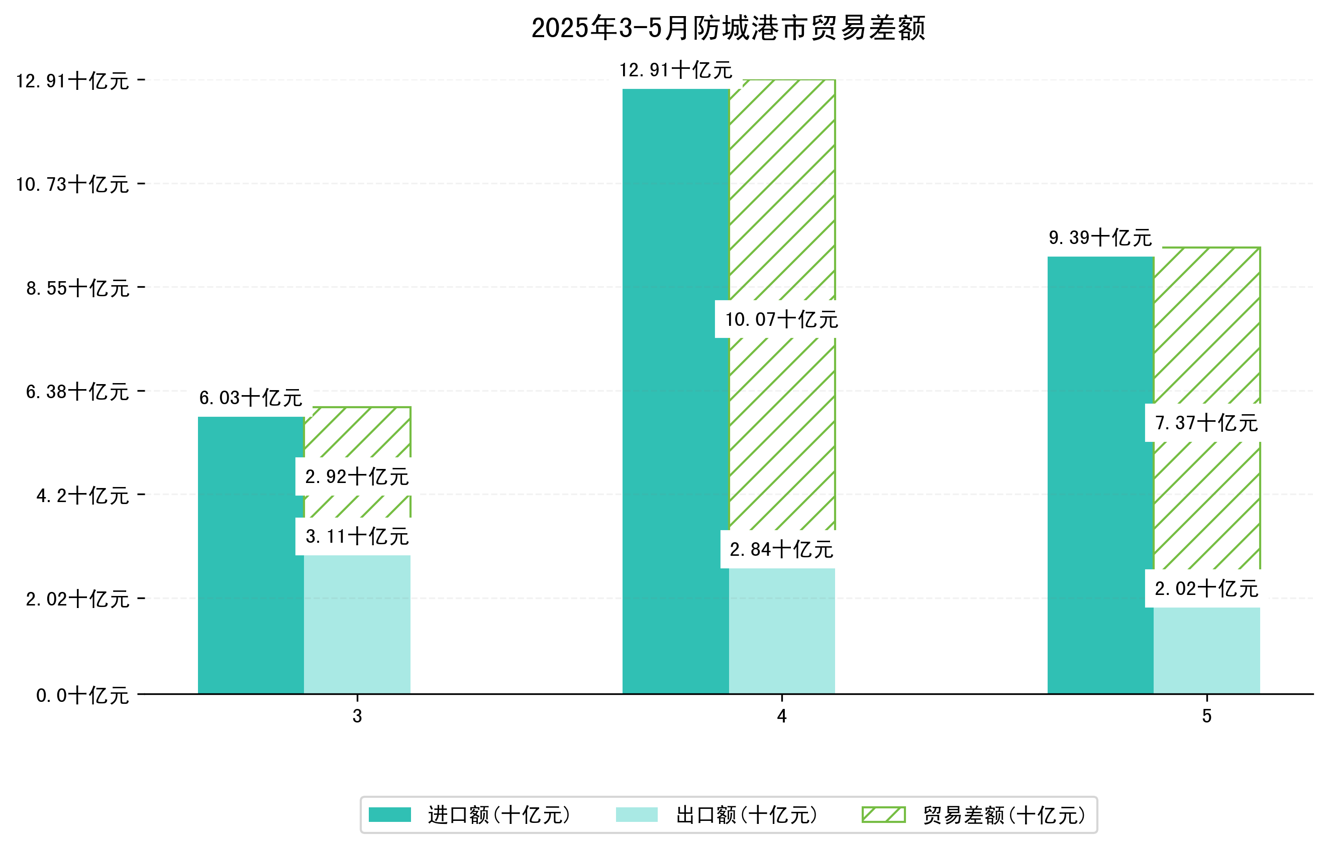 2025年5月防城港市进出口总额及进出口差额统计分析