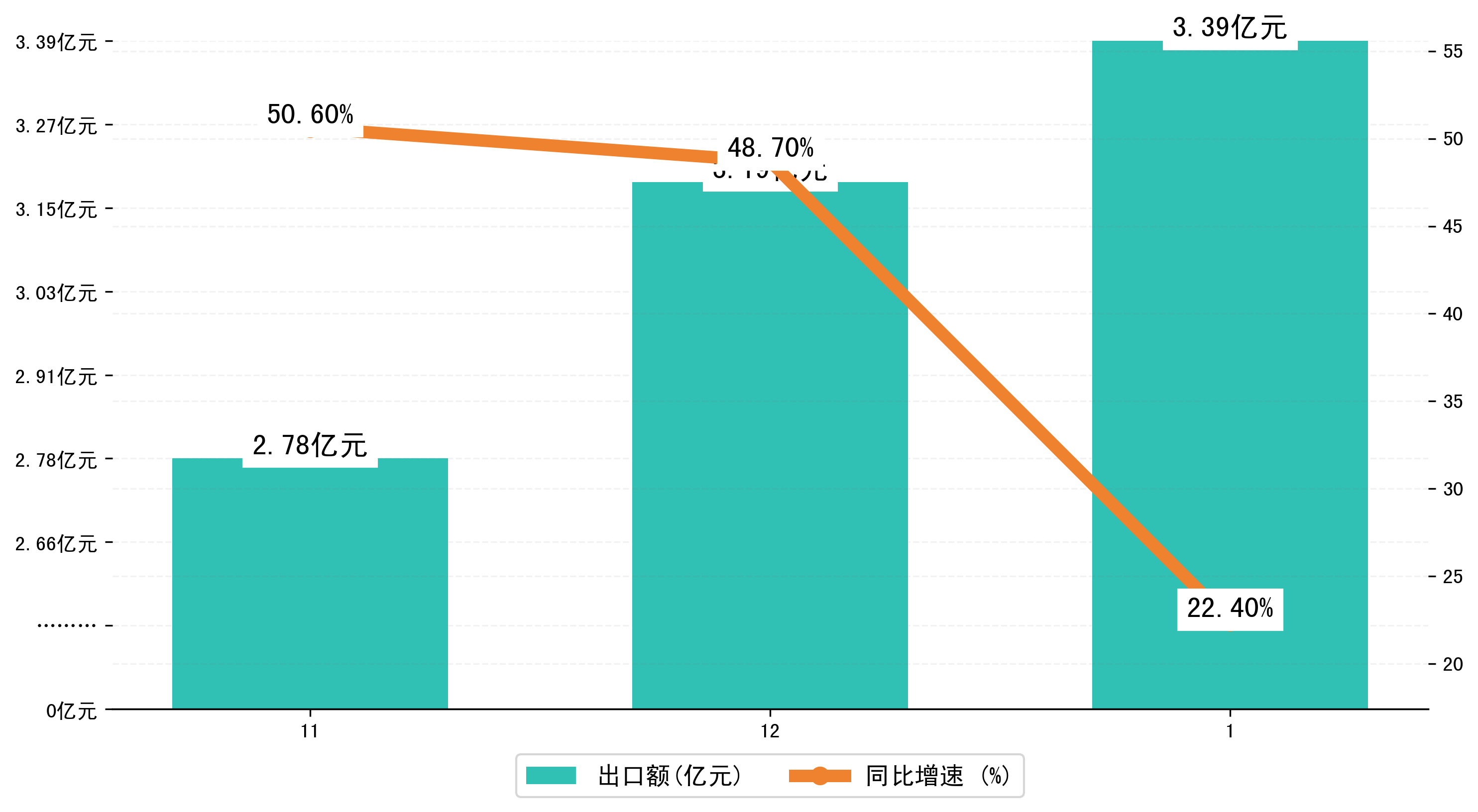 (图二:2023年11-1月池州市出口额)
