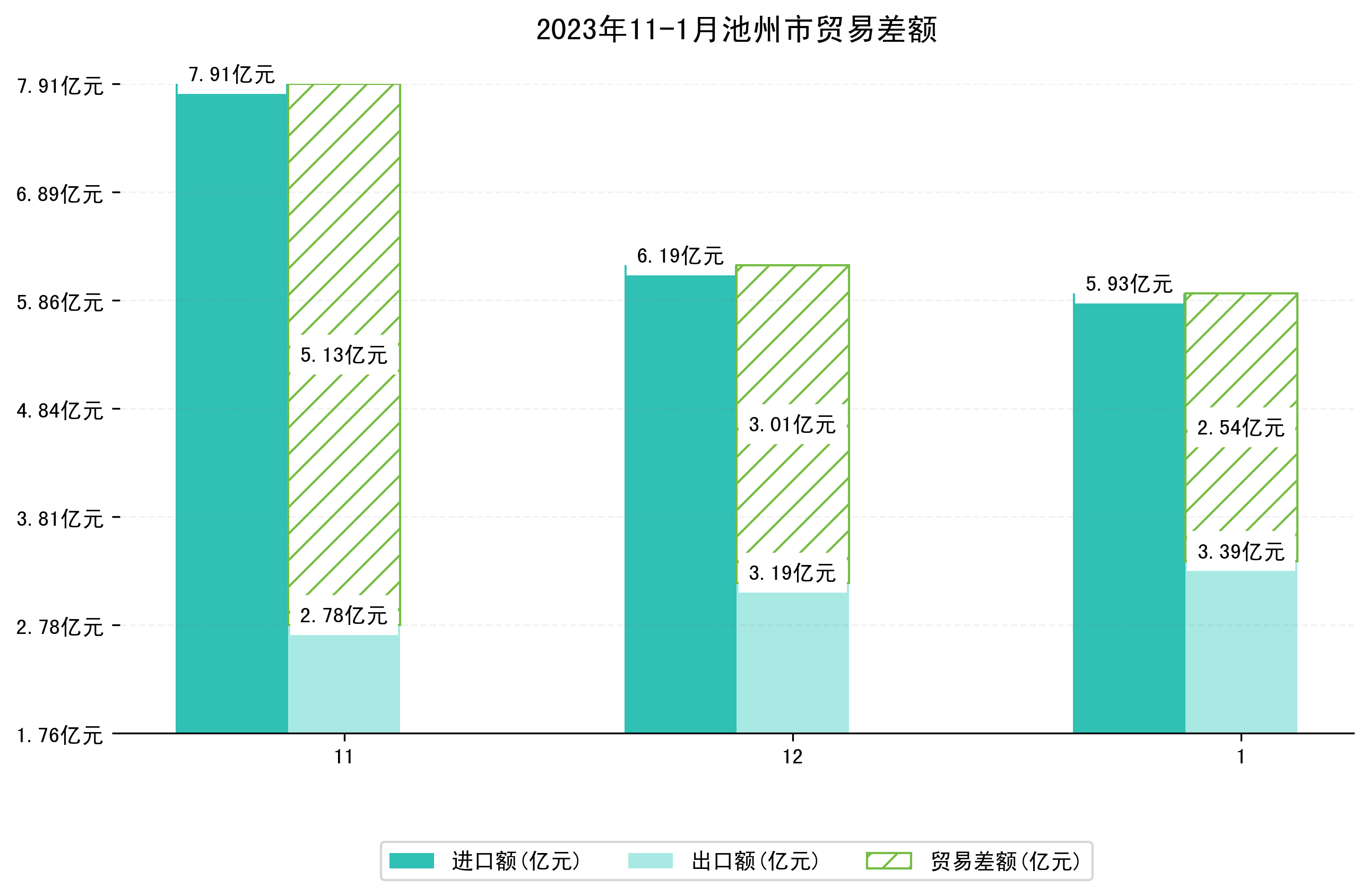 (图四:2023年11-1月池州市贸易差额)