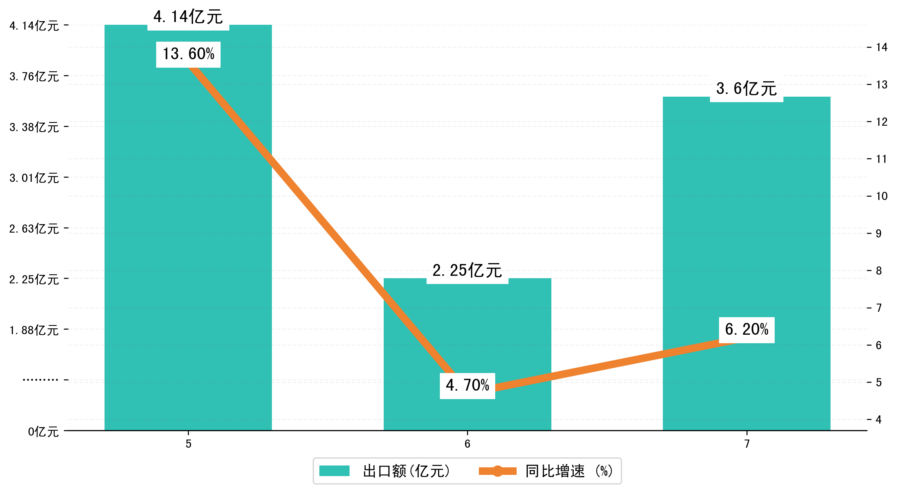 以人民币计,2023年1-7月池州市出口额为20,6385.8501万元,相比上年同期增加了9874.9228万元,同比增加了6.20%。