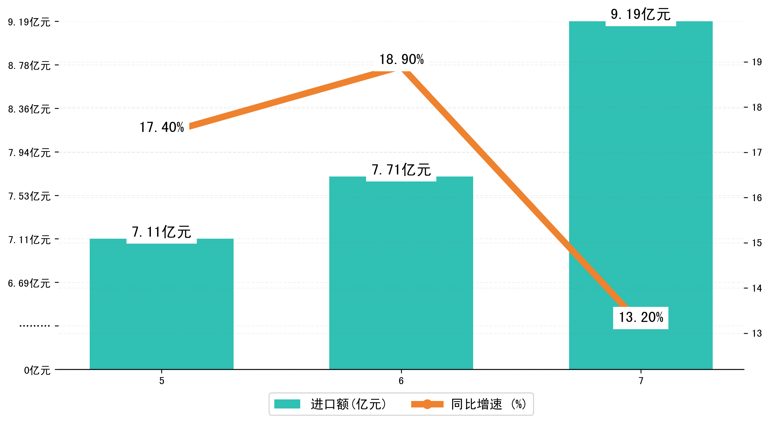 以美元计,2023年1-7月池州市进口额为8,7640.67万美元,相比上年同期增加了4066.2741万美元,同比增加6.10%。