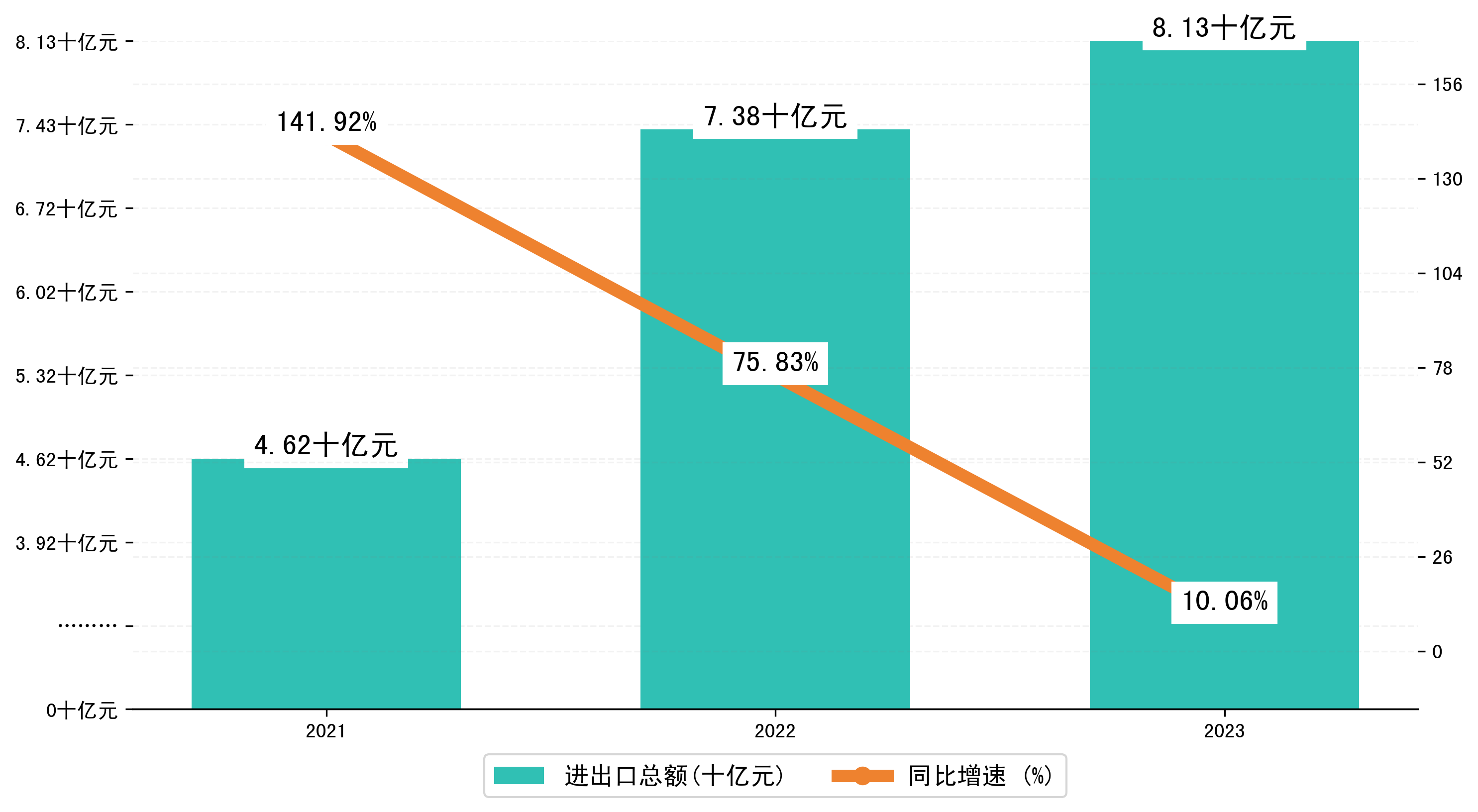 以人民币计,2023年1-7月池州市进出口总额为81,2598.6847万元,相比上年同期增加了7,4270.9655万元,同比增加了11.30%。